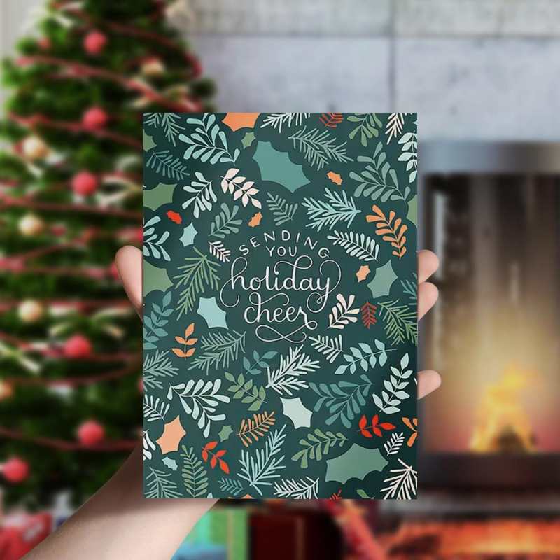 Illustrated Botanical Christmas Card Sending Cheer-Vertical Card