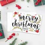 Illustrated Botanical Christmas Cards Merry Christmas Card -Horizontal Card