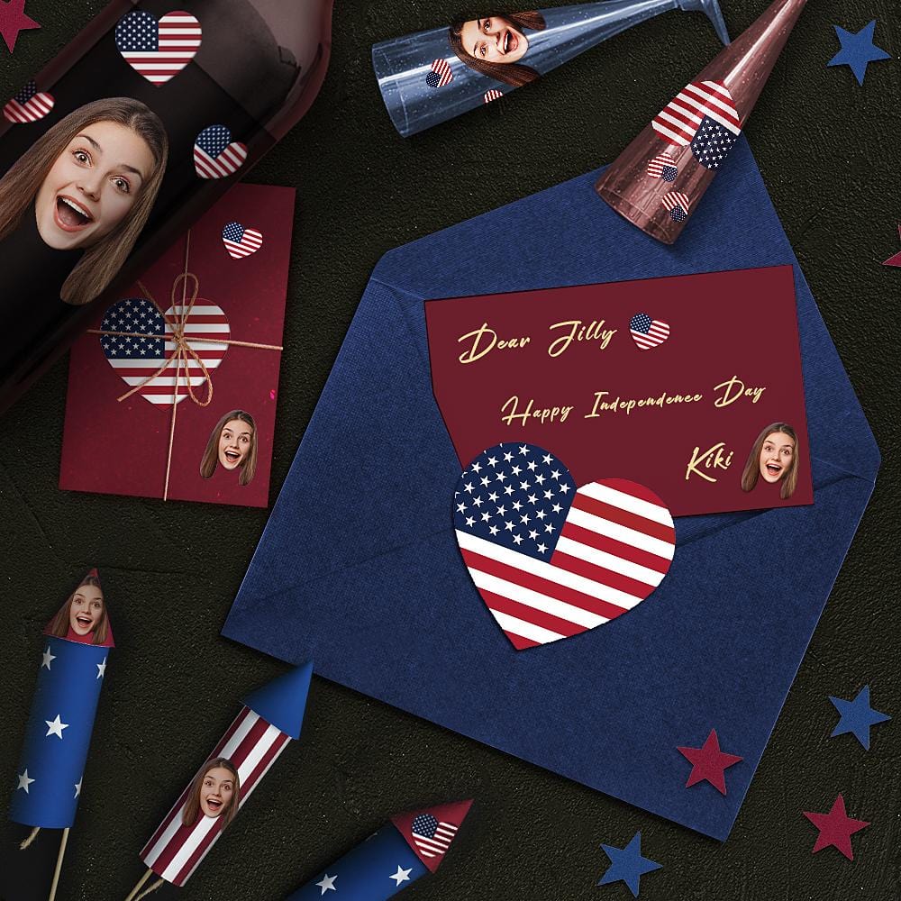 July 4th Gifts Custom Photo Face Sticker Independence Day I Love America