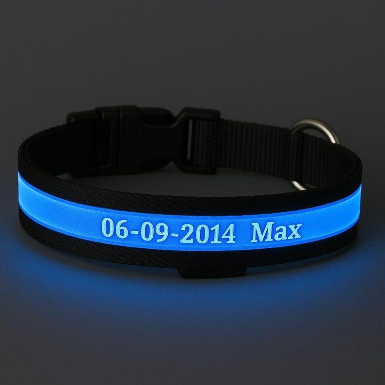 LED Dog Collar – Personalized Light-Up Pet ID Tag – Adjustable Nylon Collar for Dogs & Cats – Night Safety Glow – Custom Engraving - Waterproof