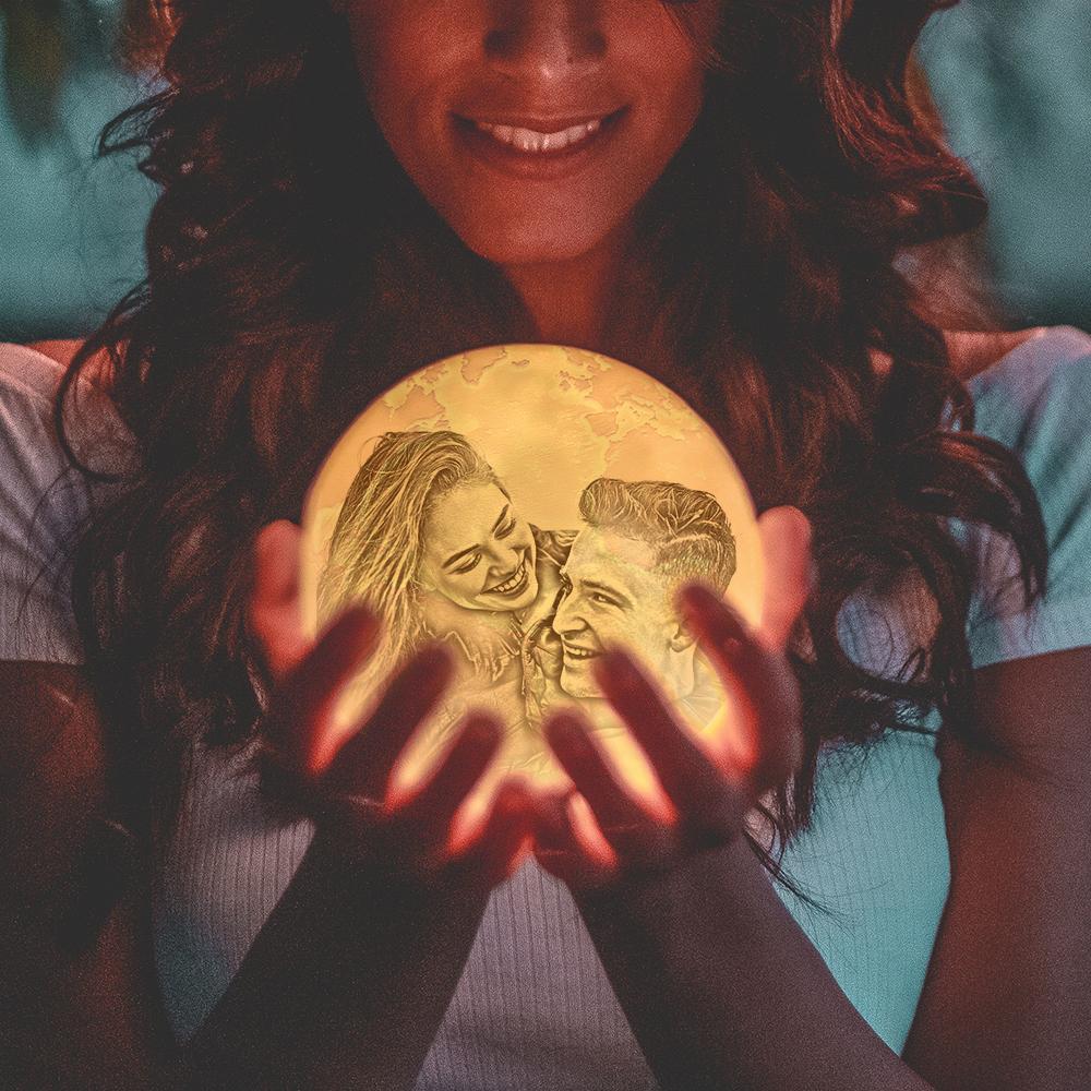 Customized Earth Lamp Engraved Photo Lamp Christmas Gifts For Wife - Touch Two Colors (10-20cm)