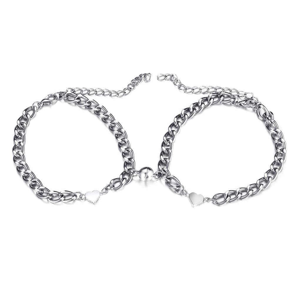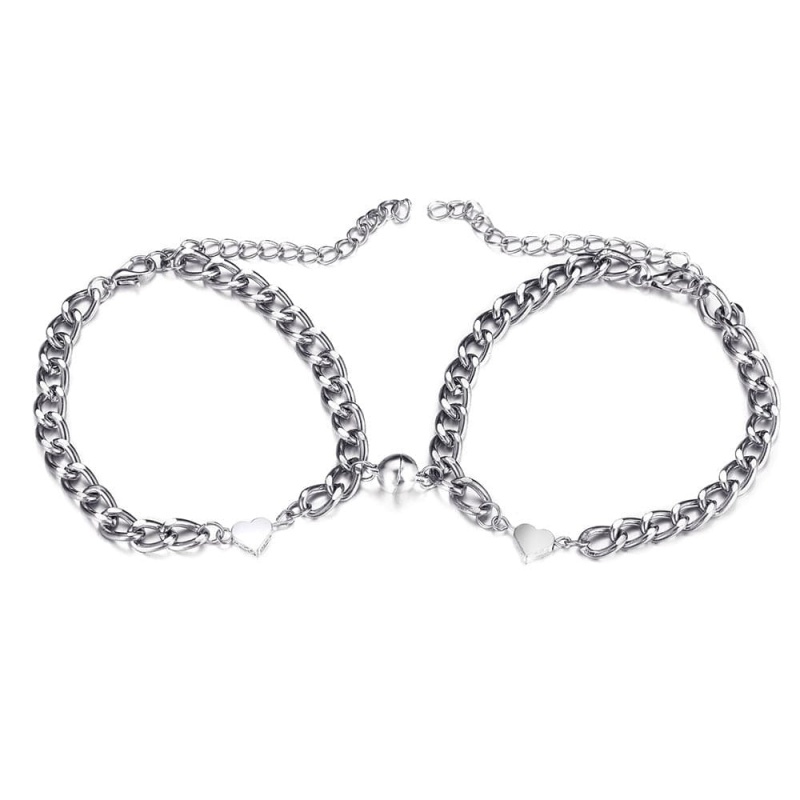 Coming with a pair of delicate heart-shaped magnetic that shows mutual attraction when getting closer. These couples bracelets are symbolizing the eternal love and friendship between lovers or friends. This matching heart bracelet for couples comes with an adjustable band that allows wearers to create the perfect fit for them. The band is sturdy, dirt-resistant and easy-match. Suitable for any occasion.