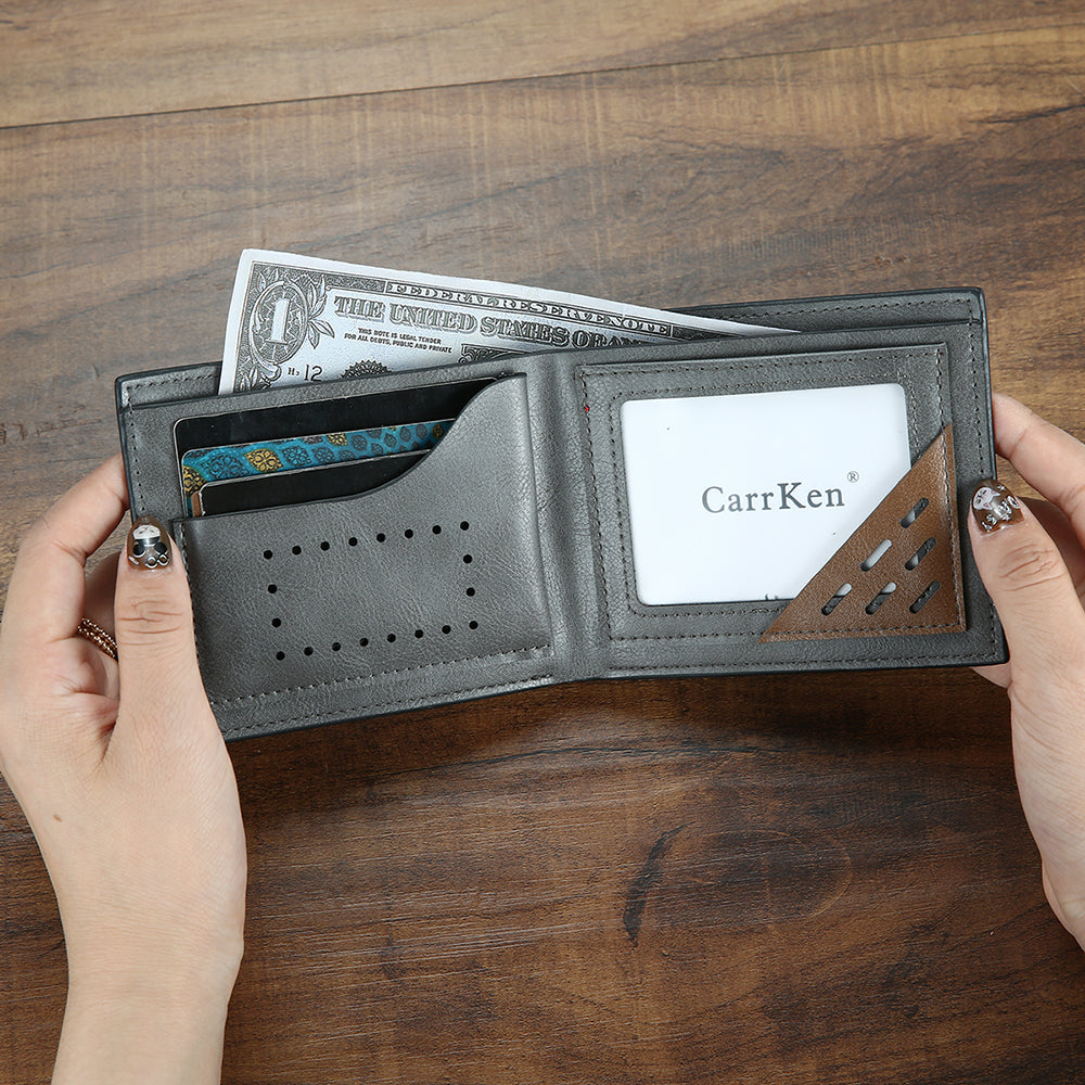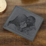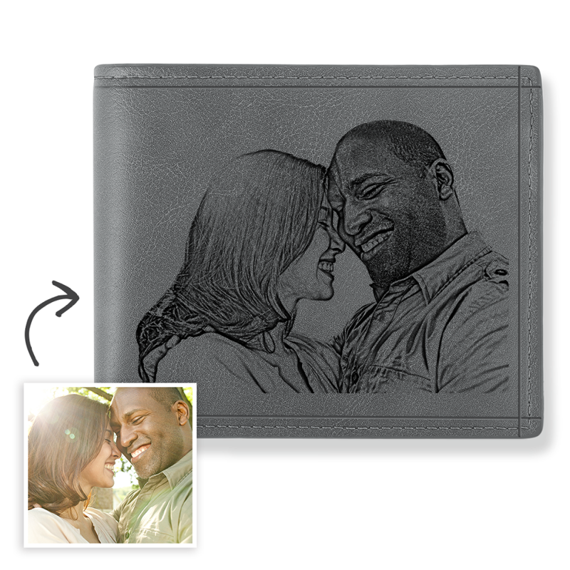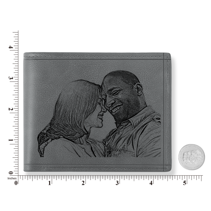 Men's Custom Photo Engraved Wallet Grey Leather