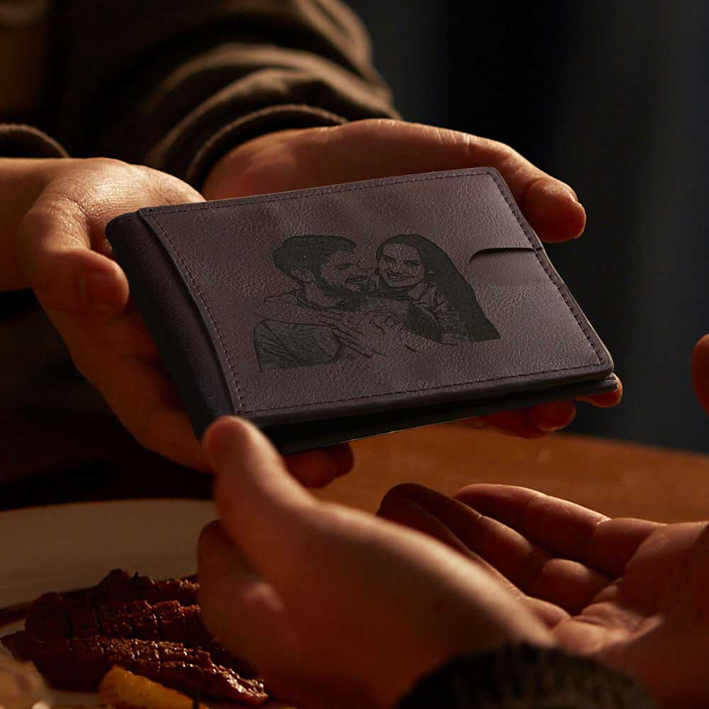 Men's Custom Photo Engraved Wallet RFID Blocking Money Clips