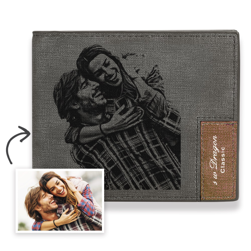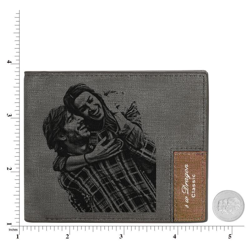 Men's Bifold Short Custom Photo Wallet Grey