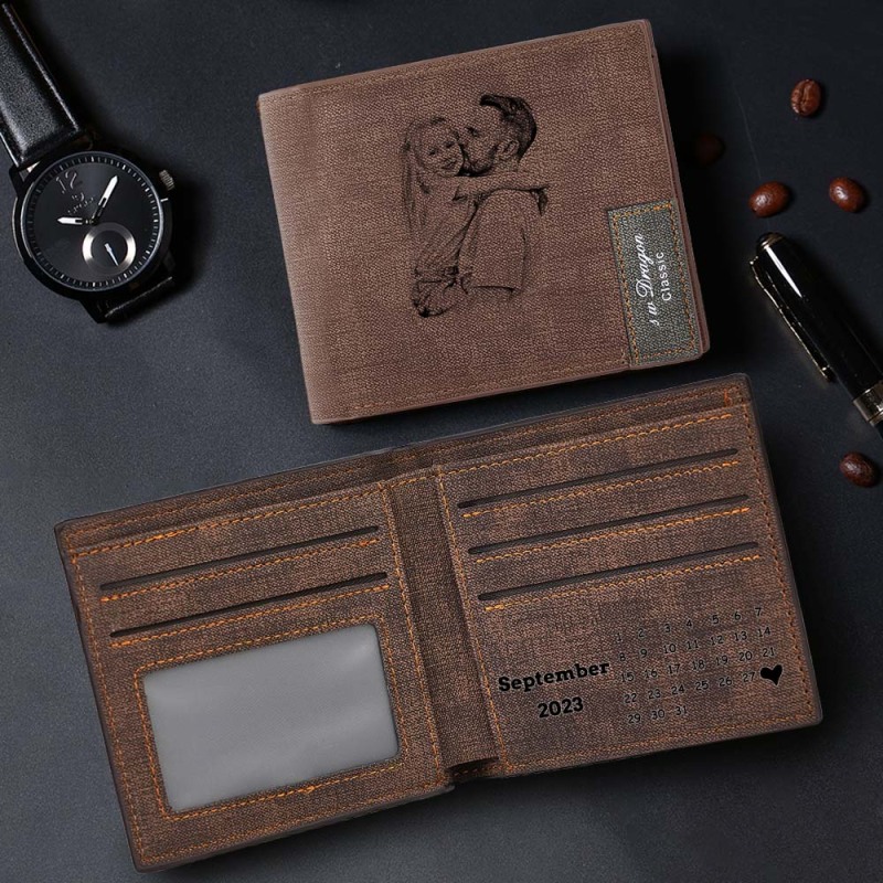 Custom Photo Wallet Men's Wallet Calendar Inside Personalized Wallet Gift for Him