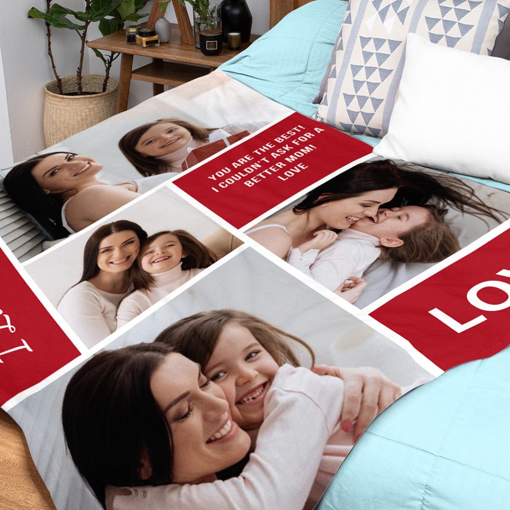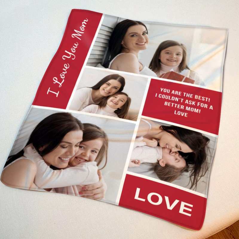 Mother's Day Blanket Custom Blanket with Photos - I Love You Mom