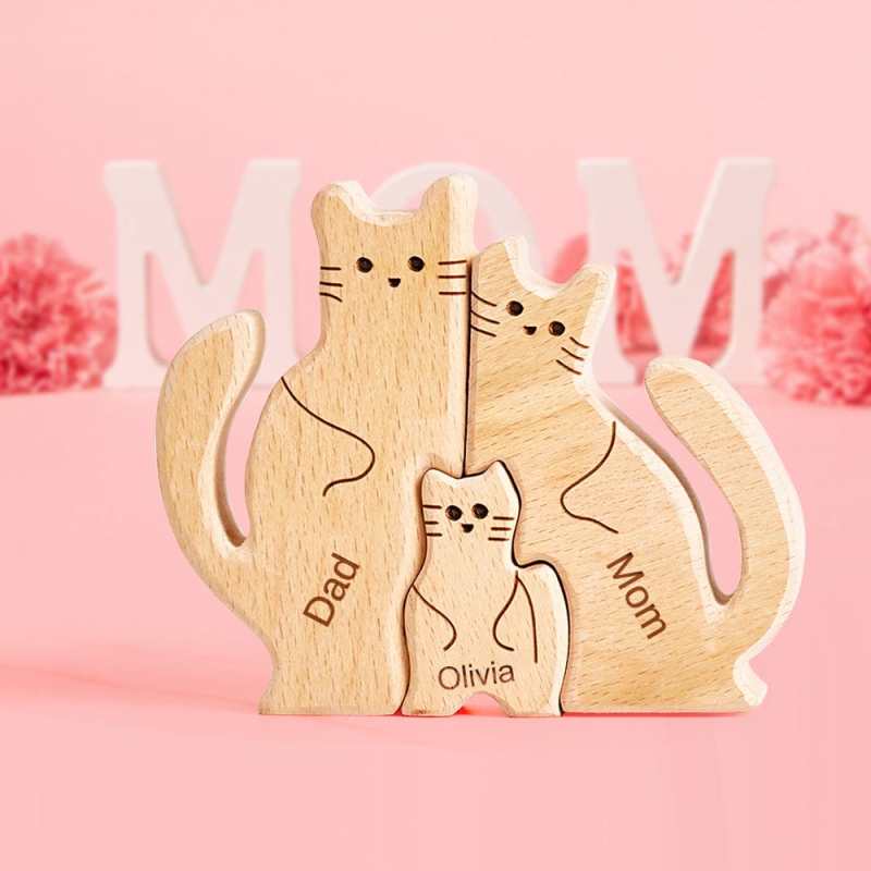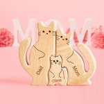 Mother's Day Gifts Wooden Cats Family Custom Names Puzzle Home Decor
