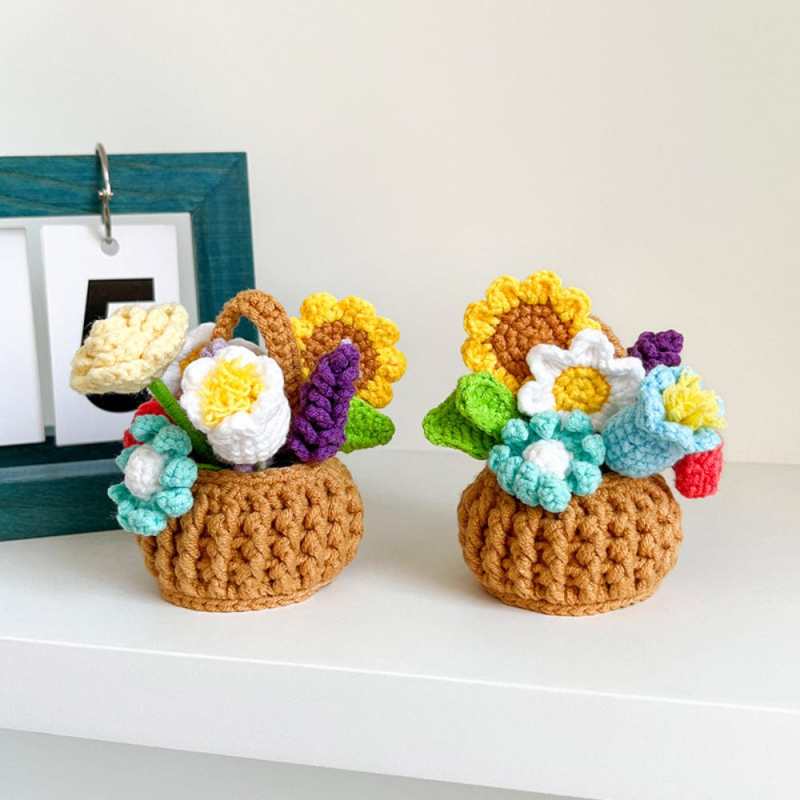 The completed crochet potted flowers are 100% knitted by hand instead machine. Professional craftsmen carefully weave and create, which has great storage value. The crochet flower kit material is realistic in shape, does not wither or fall, and is straight and durable, the flower that never fades represents the eternal blessing. Placing them in your car or at home can bring you in a good mood.