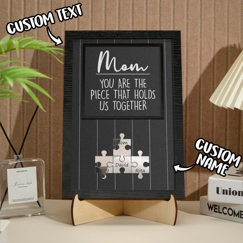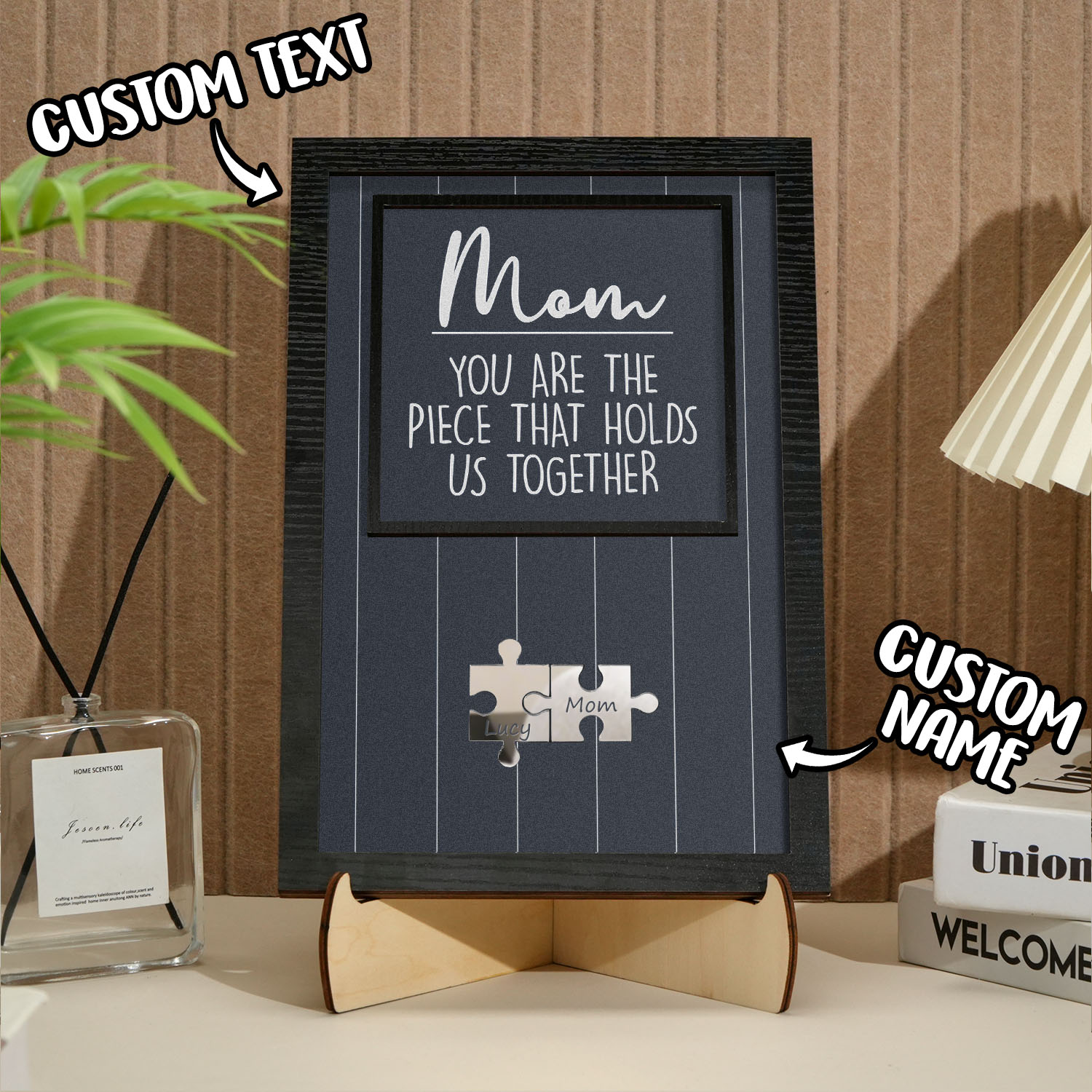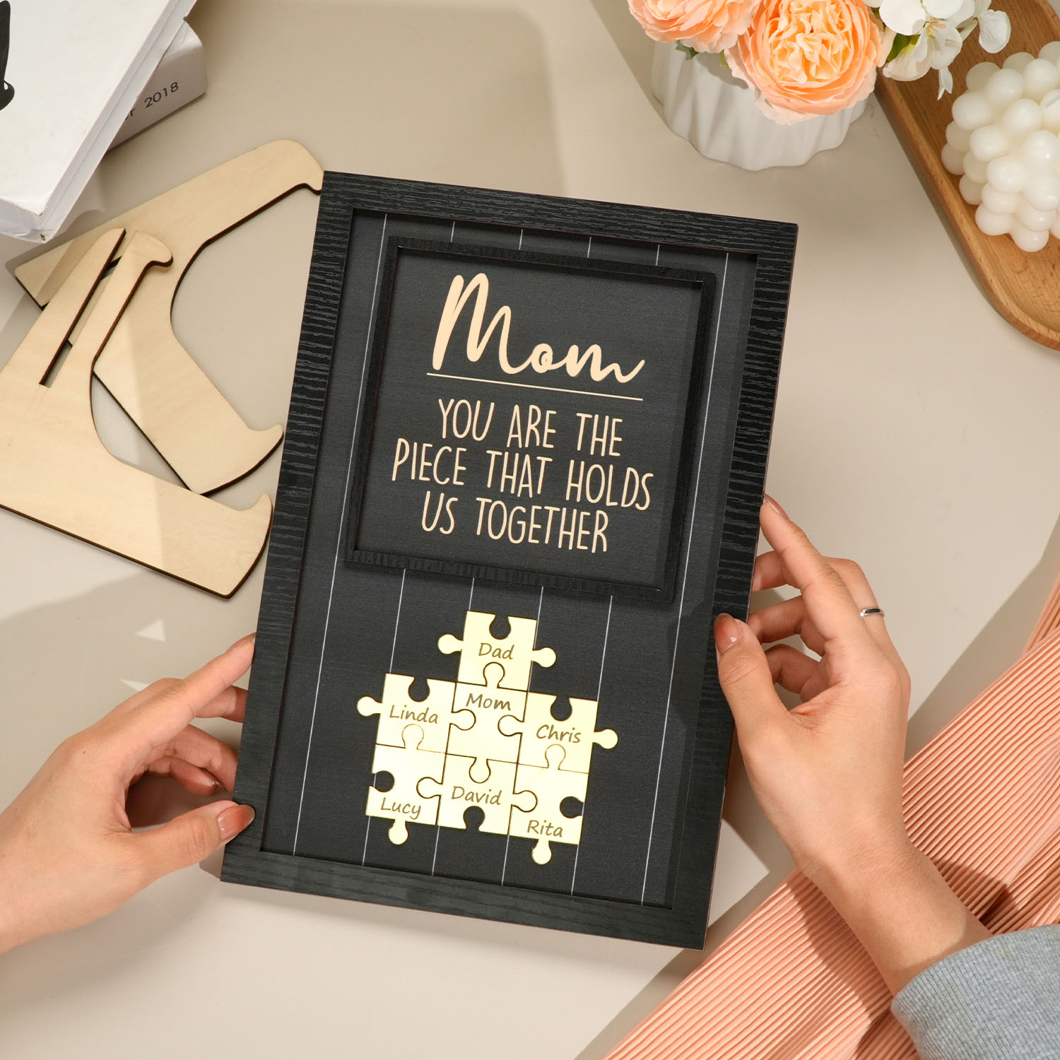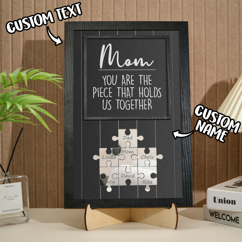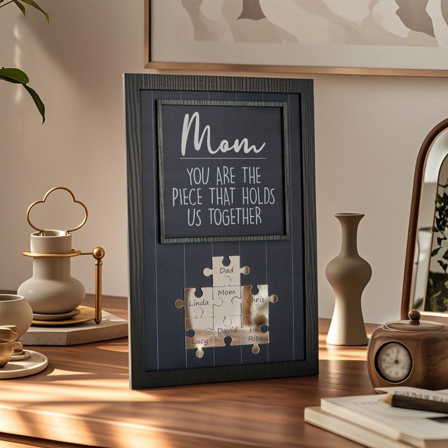 Customizable Names "you are the piece that holds us together" plaque with customizable puzzle pieces with names on them!