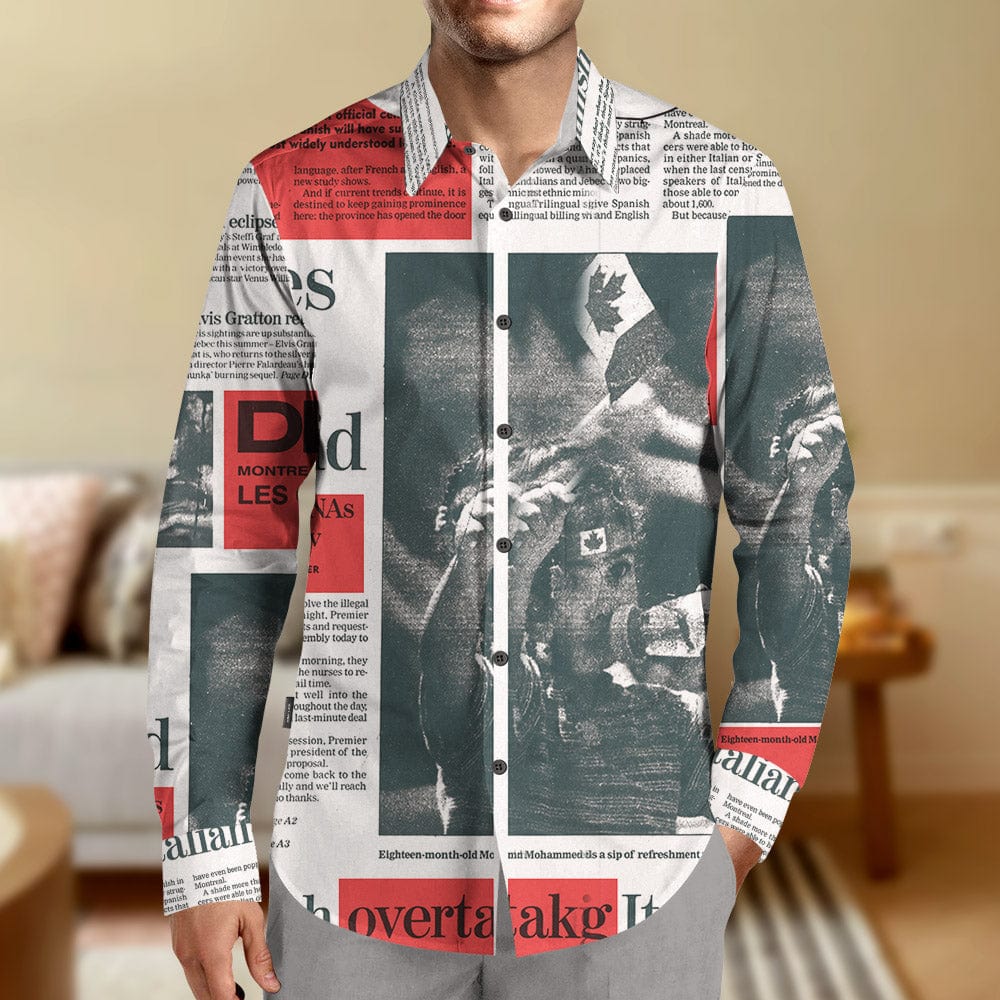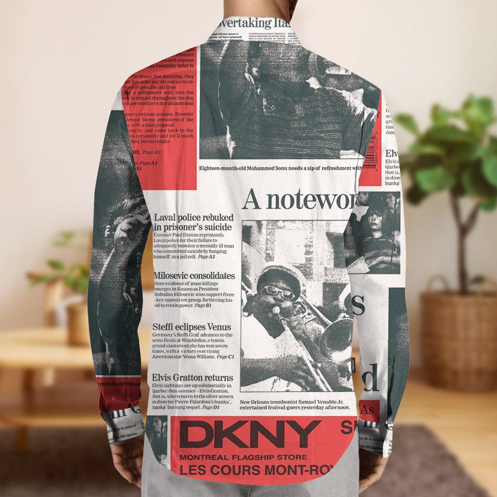 Newspaper Print Shirt Long Sleeve Casual Shirt Birthday Gifts for Family
