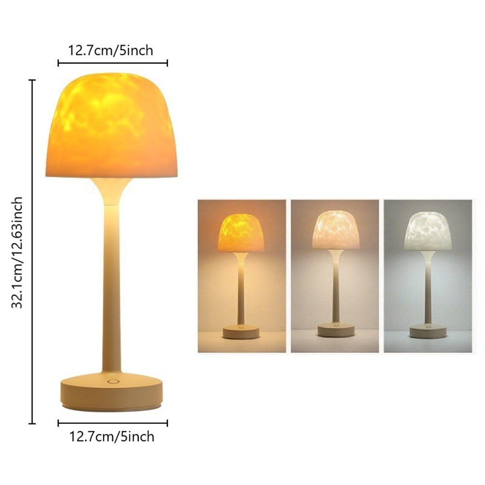 UNIQUE DESIGN: Cordless table lamp combines a wave projector, night light, and desk lamp in one device, and when you remove the white lampshade, it will be a wave projector (push up the white lampshade to remove it)