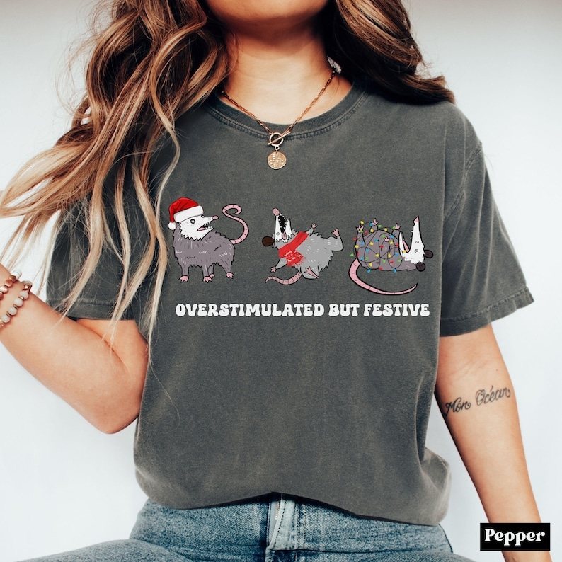 Celebrate the holidays with a laugh in our "Overstimulated But Festive Possum Christmas Shirt". Featuring a quirky possum design that perfectly captures that chaotic-yet-cheerful holiday mood, this shirt is a must-have for anyone who loves humor, memes, and festive fun.