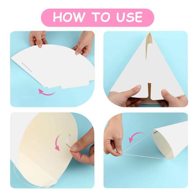 Easy to use: before assembling, the hat is fan-shaped, which is easy to assemble into a cone easily, then put the elastic rope through the hole and fixed it on both sides of the hat, a fun party cone hat is ready for you, not easy to move or fall down.