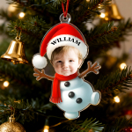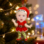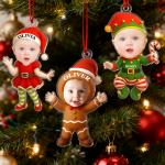 Featuring your baby’s photo and name on a festive design with Santa, Gingerbread, and Elf outfits, this ornament captures the joy, laughter, and wonder of the holiday season.