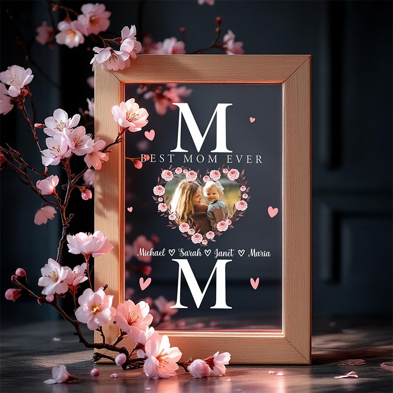 Celebrate your mom's birthday with this elegant custom acrylic photo frame featuring vivid UV printing on clear acrylic, beautifully encased in a stylish wooden frame. Whether it's Mother's Day, a birthday, or a special occasion, this piece is a heartfelt and timeless gift.