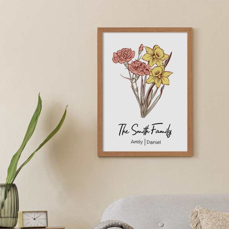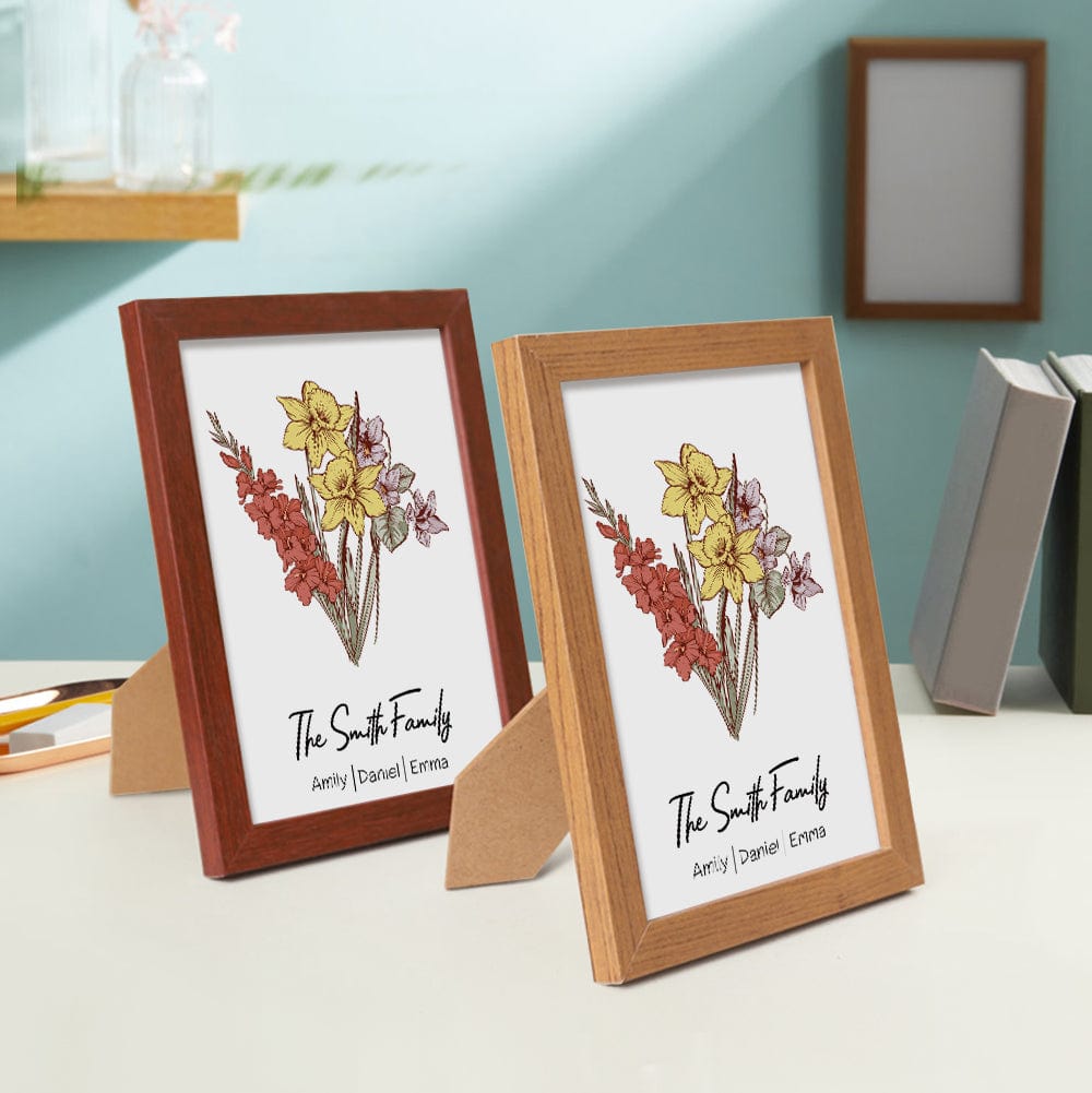 Treat Mom to a unique and thoughtful gift with our personalized bouquet frame! Each bouquet is printed with the birth flowers for each given name, making it a truly one-of-a-kind present. Show her how much she means to you with this customizable and heartfelt gift.