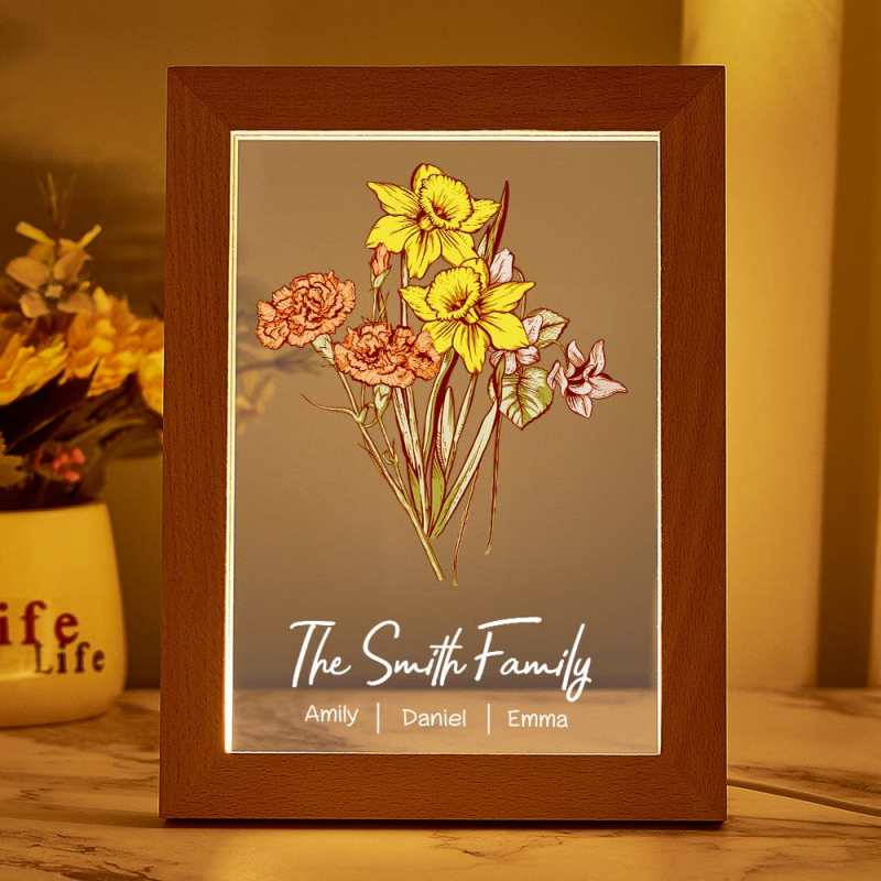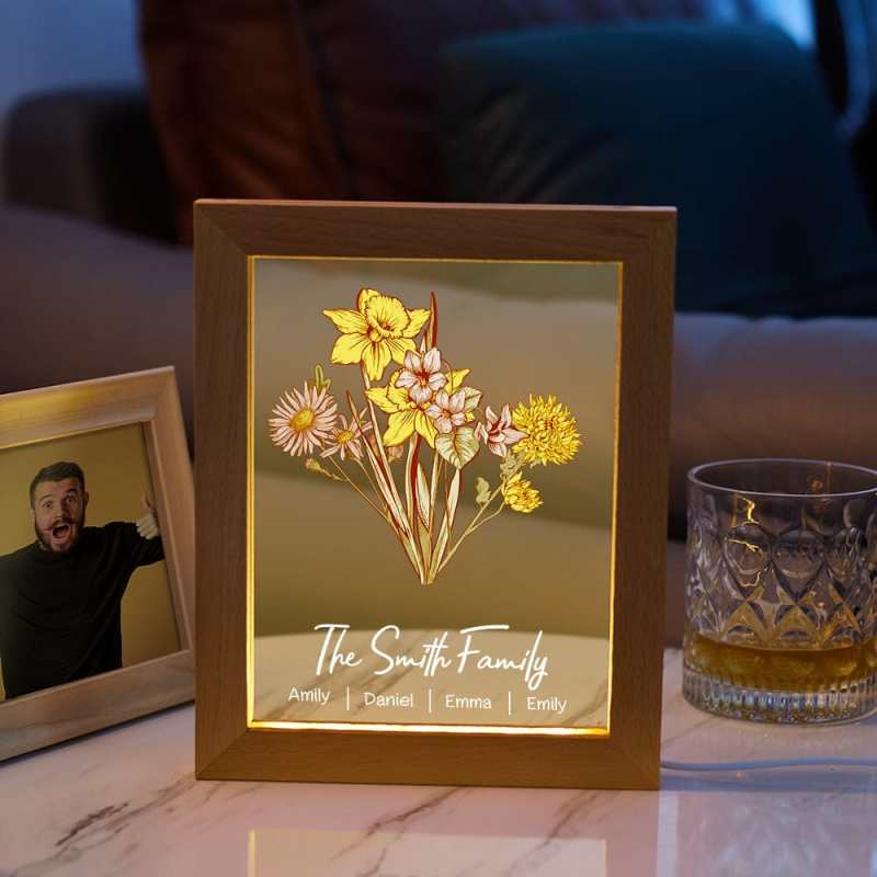 Illuminate your mom's life with our Personalized Birth flower Bouquet Names LED Light Gift. Each bouquet is uniquely crafted and customized with your member's name and birth flower, creating a beautiful and meaningful gift. The LED light adds a warm and cozy touch to any room, making it the perfect gift for any occasion.