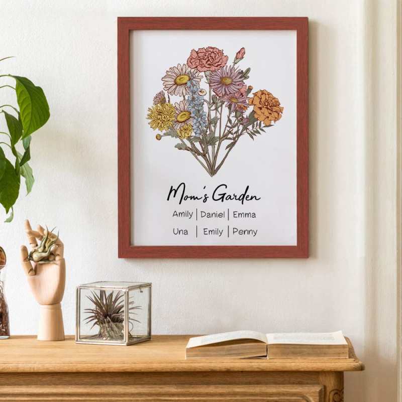 Treat Mom to a unique and thoughtful gift with our personalized bouquet frame! Each bouquet is printed with the birth flowers for each given name, making it a truly one-of-a-kind present. Show her how much she means to you with this customizable and heartfelt gift.