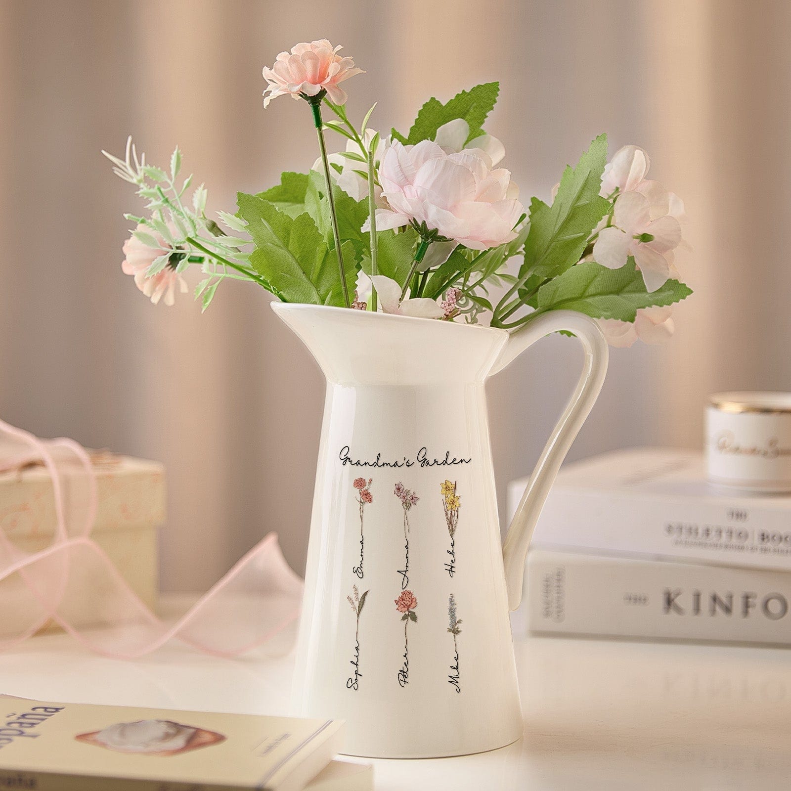 This ceramic vase is personalized with a distinctive birth flower design, making it a considerate and significant gift for mothers and grandmothers. The detailed design beautifully highlights their individual flower and adds a personal element to any home decor. Whether it's Mother's Day, birthdays, anniversaries, or any occasion honoring the influential women in our lives, this vase is the perfect selection. By gifting this birth flower vase to your loved ones, you are presenting them with a truly meaningful and personalized gift that will be treasured for years to come.