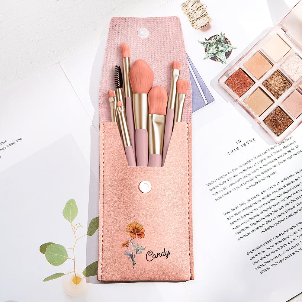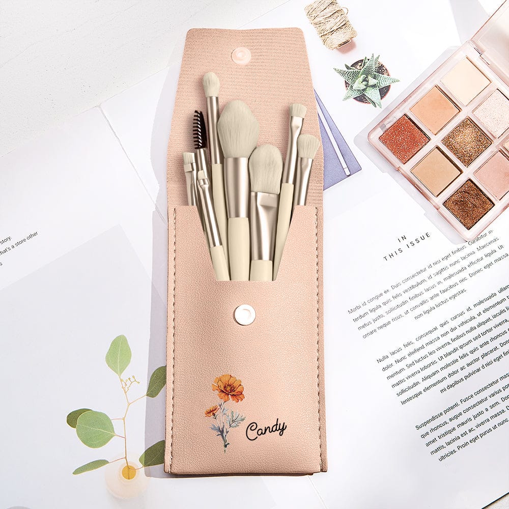 This personalized flower leather makeup brush bag is both stylish and functional. With the option to personalize, it makes for a thoughtful and unique gift for anyone who loves makeup. This set includes eight high-quality makeup brushes that cater to all makeup needs. They are suitable for both beginners and professionals, making it a versatile gift option.