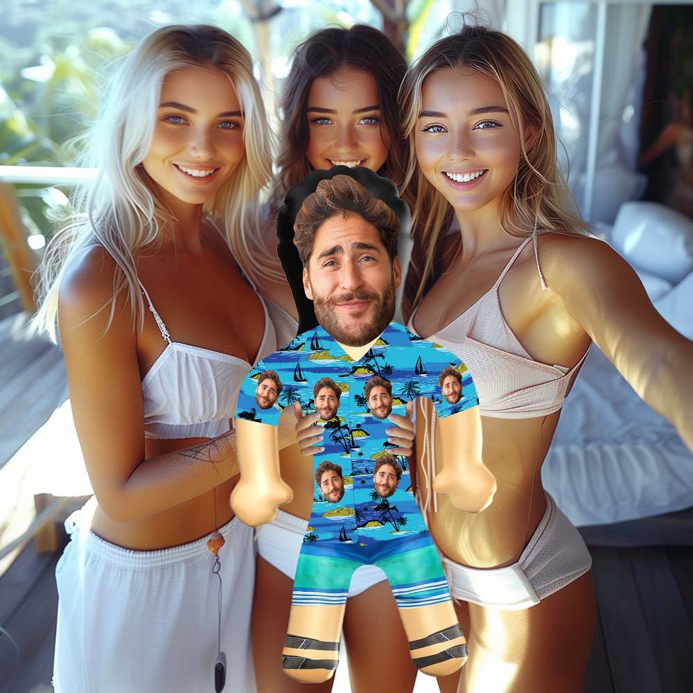 Personalized Blow Up Dolls Hawaiian Shirt Flowers and Leaves Funny Inflatable Man Printed Face for Party Favors
