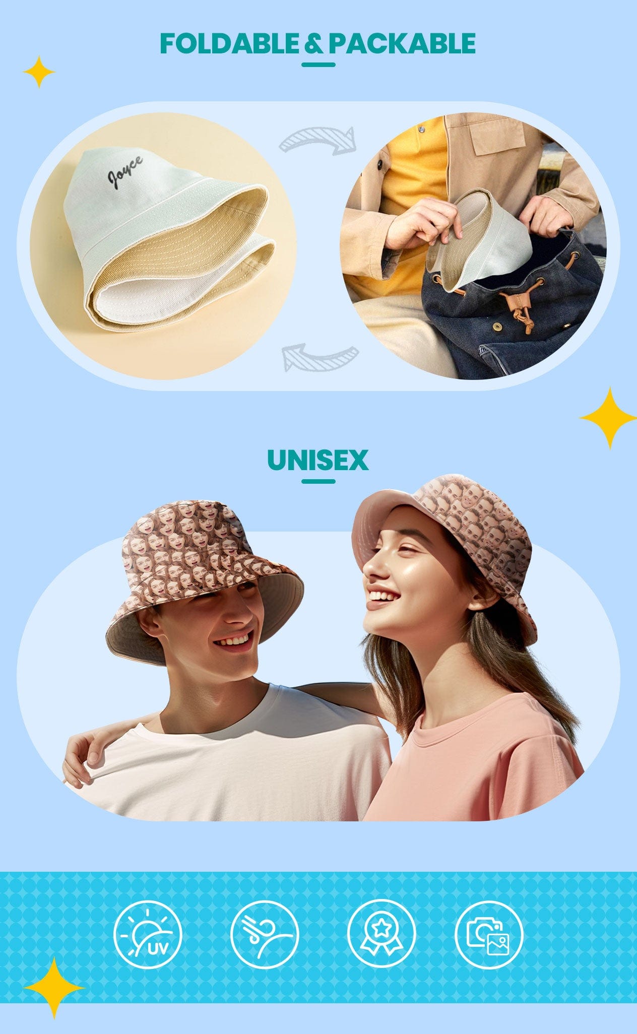 Related products: custom bucket hats, photo t-shirts, custom Hawaiian shirts, photo swimsuits, custom face socks, custom flip flops, custom swim trunks, summer gifts, etc.