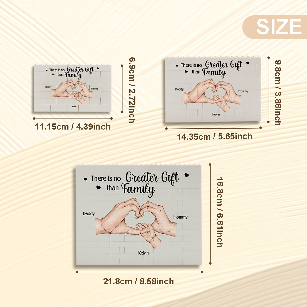 Craft a unique gift for Mom with our customizable building brick family blocks. Choose from 1 to 6 kids and three sizes to create a one-of-a-kind keepsake she'll cherish forever. Add a personal touch to show her how much she means to you.