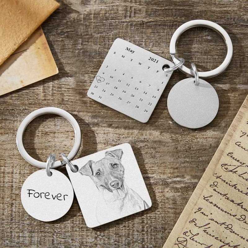 Personalized Calendar Keychain Engraved Photo Keychains Gifts For Pet Lovers