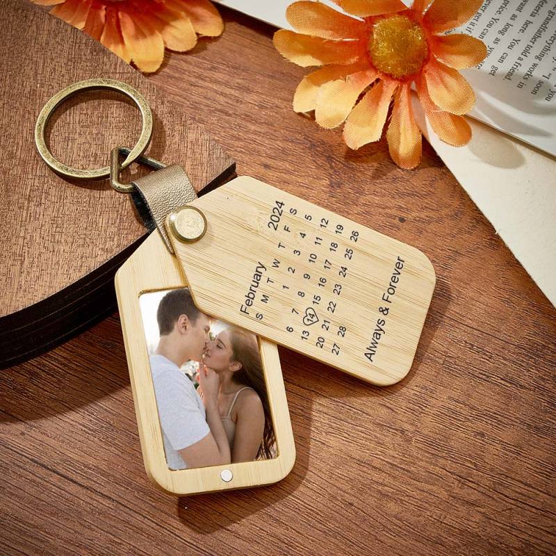 Celebrate your love with our Personalized Calendar Photo Keychain! Engraved with your special date, this magnetic keychain is a unique gift for Valentine's Day. Keep your favorite memories close and make a bold statement with this personalized accessory. It's the perfect way to show your daring and adventurous side to your significant other.
