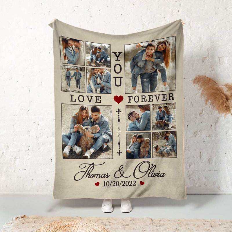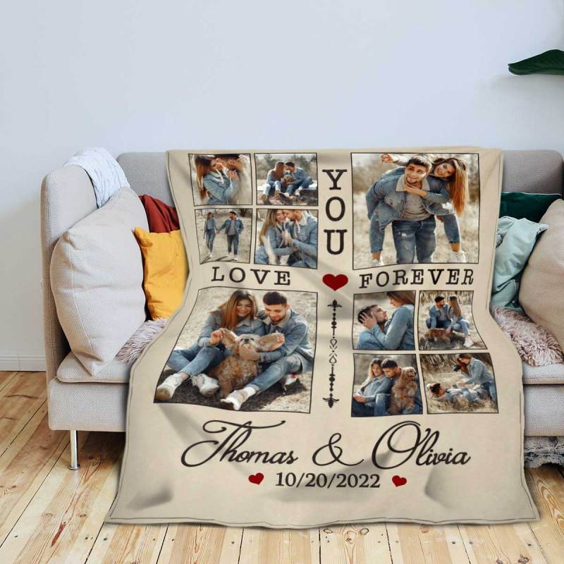 Personalized Couple Blanket With Photo, Custom Photo Blanket For Her, Picture Collage Gift For Couple, Anniversary Valentine’s Day Gifts For Her