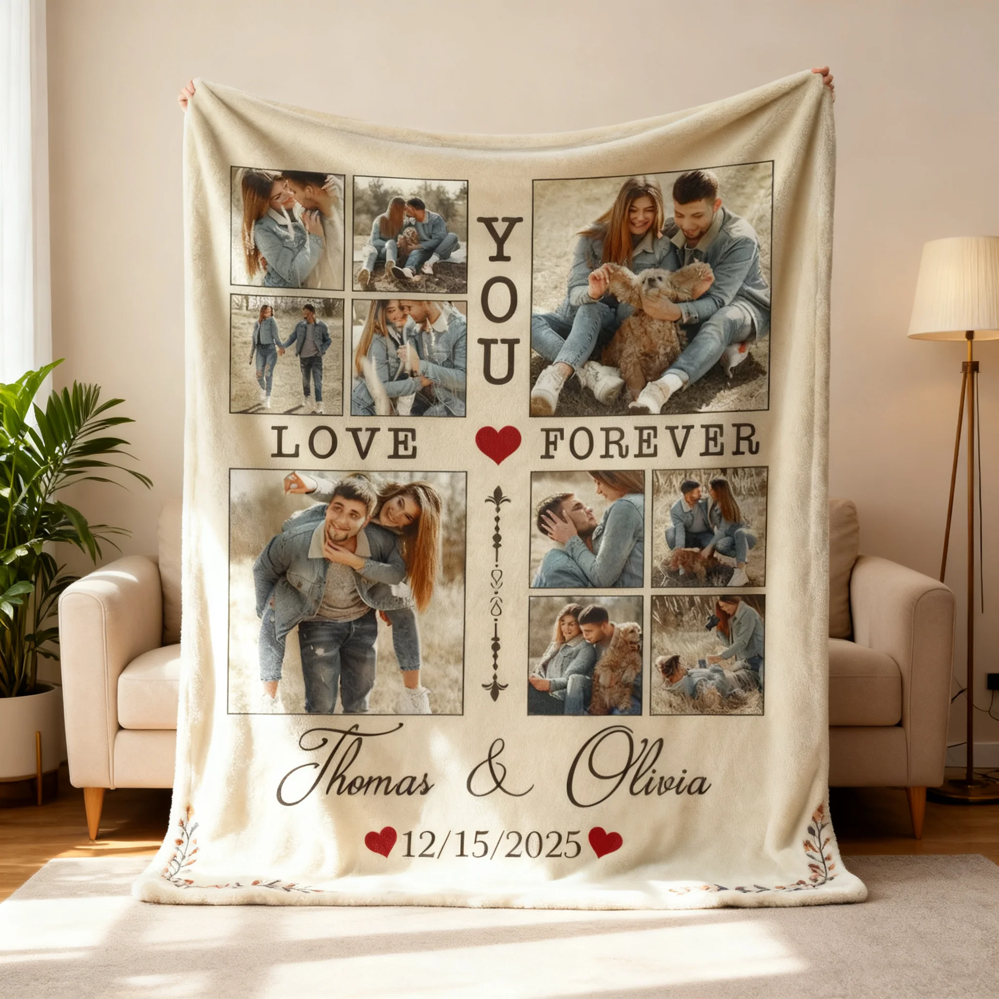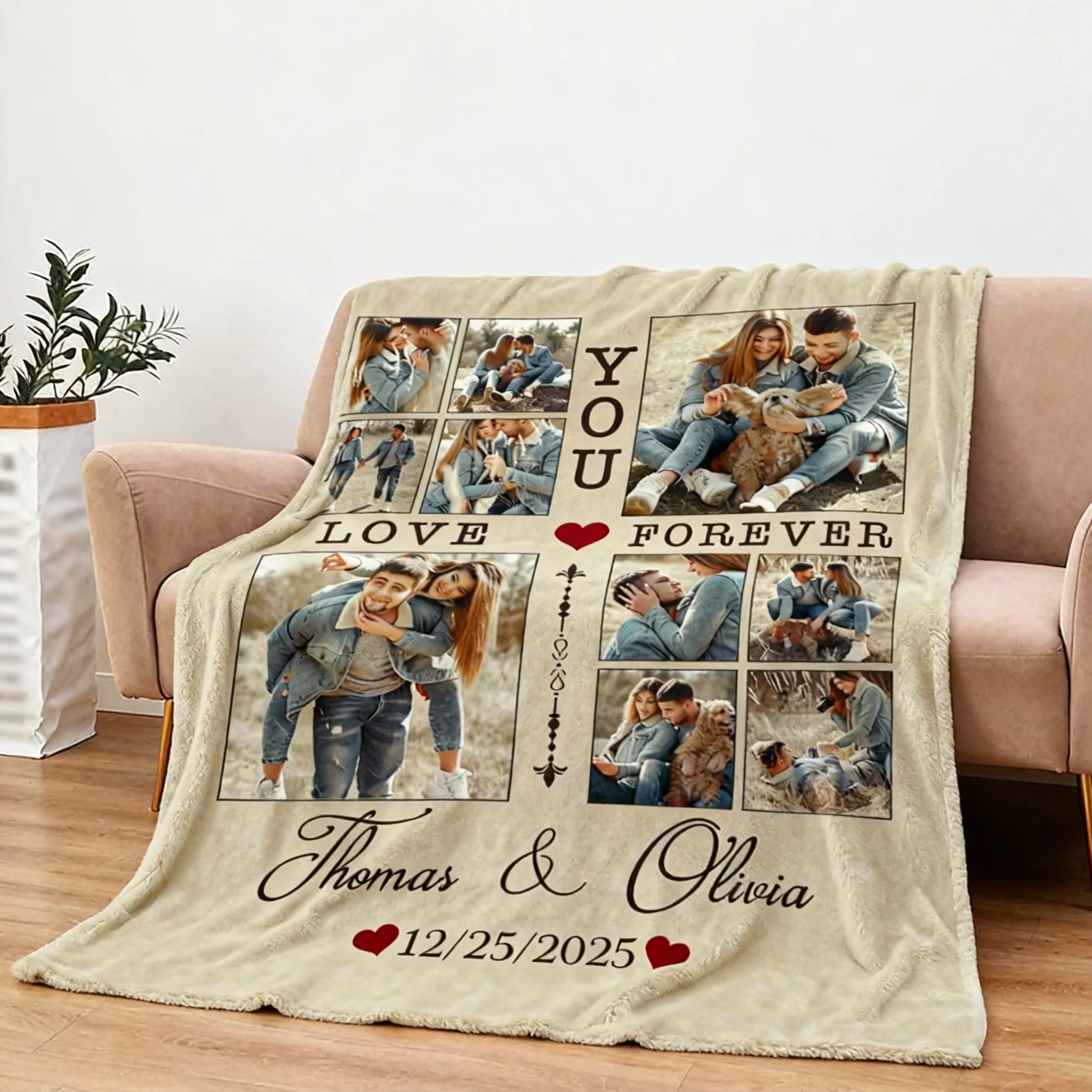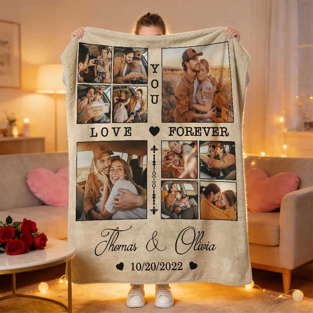 Crafted from soft, cozy fabric, this custom blanket lets you turn your favorite couple snapshots into a unique picture collage. Every image-whether it’s your first kiss, wedding day joy, or lazy weekend laughs-tells the story of your unbreakable bond.