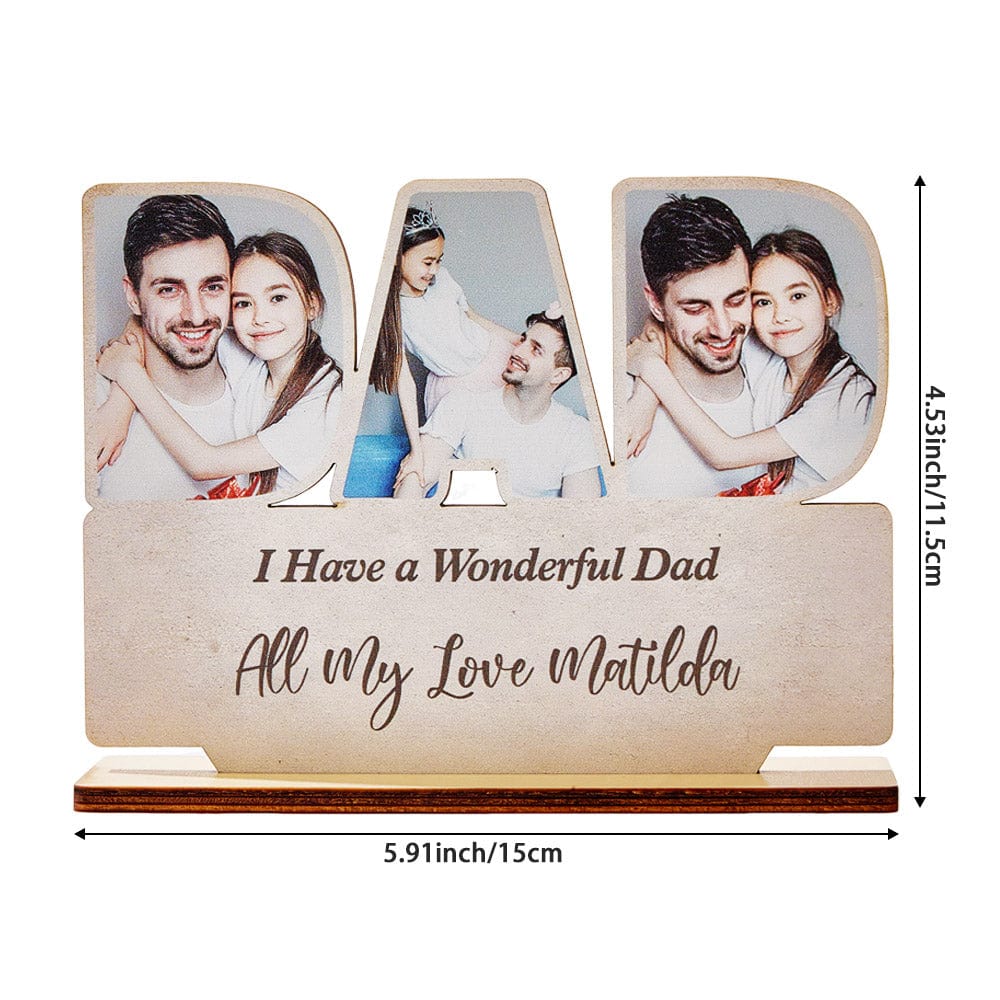 This personalized wooden plaque is the perfect Father's Day gift for Dad. Made with high-quality wood, it features a custom photo and a heartfelt message. Show your love and appreciation with this unique and sentimental plaque.