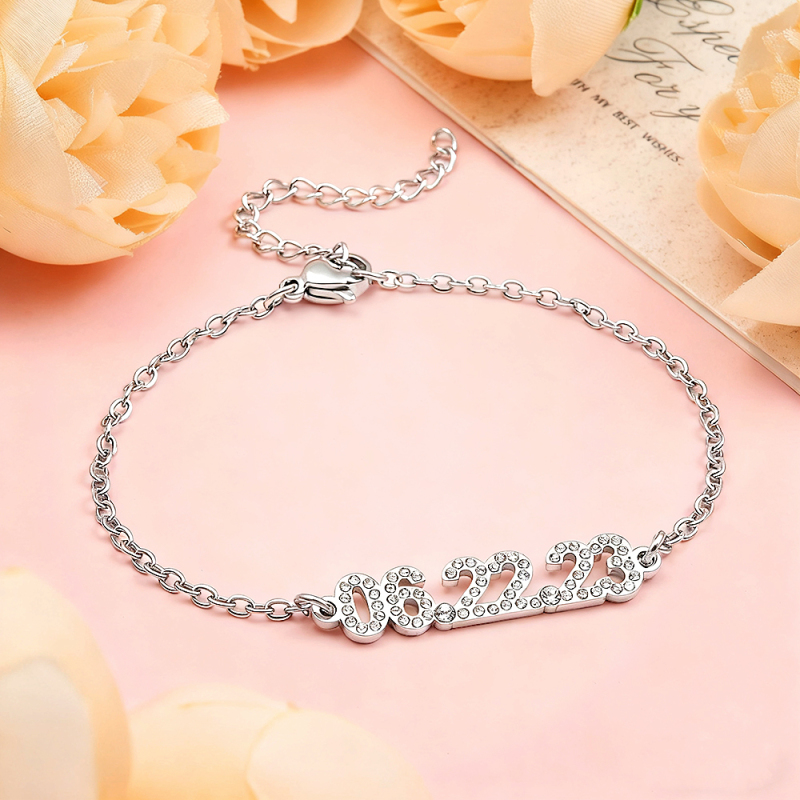 Wear your most cherished memory on your wrist. This elegant personalized date bracelet is a simple yet powerful way to immortalize the most important moments of your life. Whether it's the day you met, the birth of a child, your wedding day, or any other significant memory, this bracelet transforms it into a timeless piece of art.