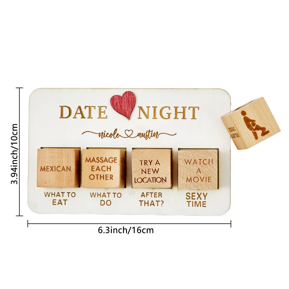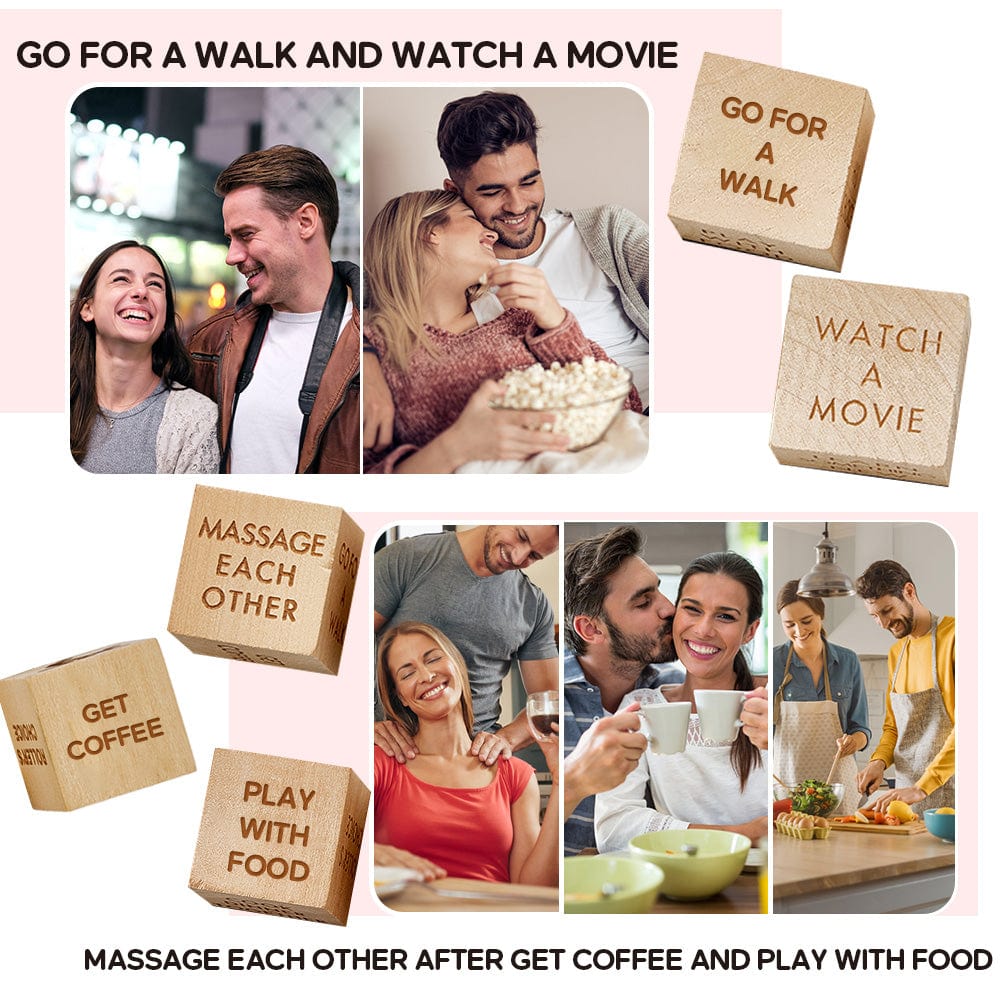 Our wooden dice hold the key to unlocking a world of romantic possibilities on your dates. With your different options - What to eat, what to do, what to do afterward, and a playful 'sexy time' - you can choose according to the moment's vibe. Let these dice create an atmosphere of romance and joy, ensuring unforgettable nights.