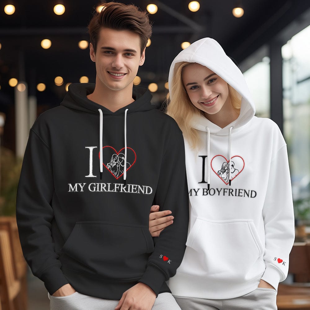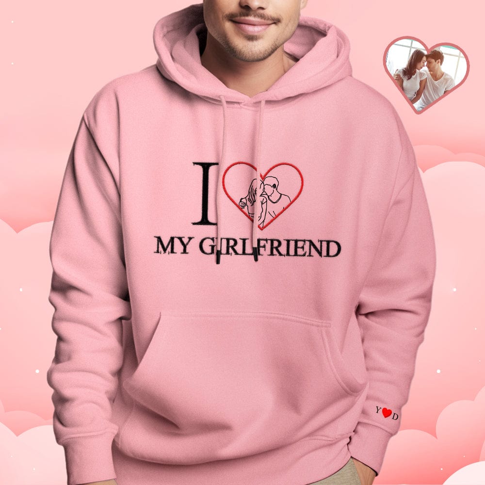 Personalized Embroidered Photo Outline Hoodie Red Heart Custom Picture Portrait Sweatshirt Valentine Gift
