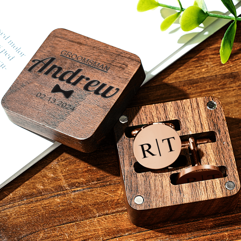 Make a lasting impression with our Personalized Engraved Cufflinks Set. The wooden box adds an elegant touch to this perfect wedding gift for men or groomsmen. With the option to personalize, these cufflinks will be a thoughtful and meaningful addition to any formal attire.