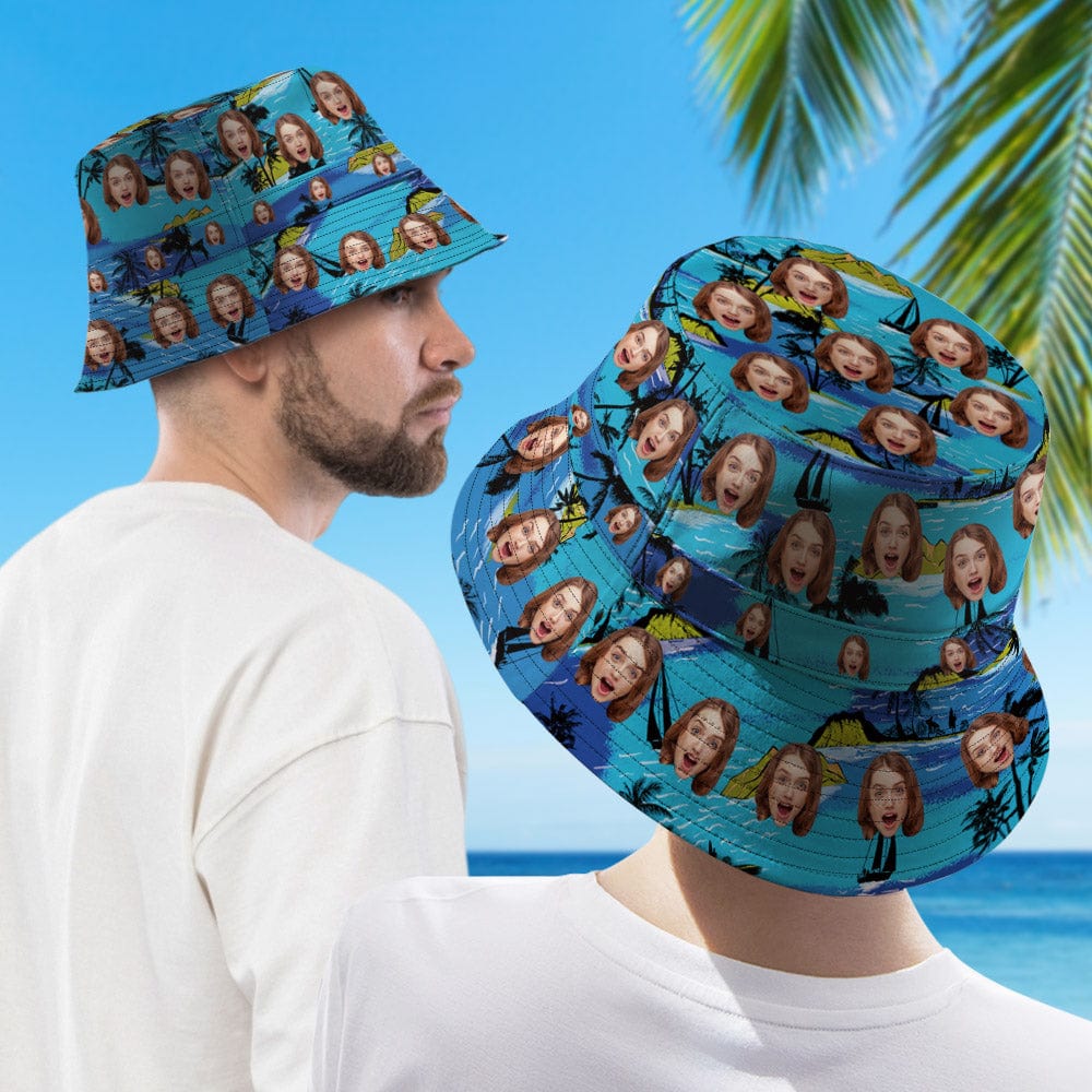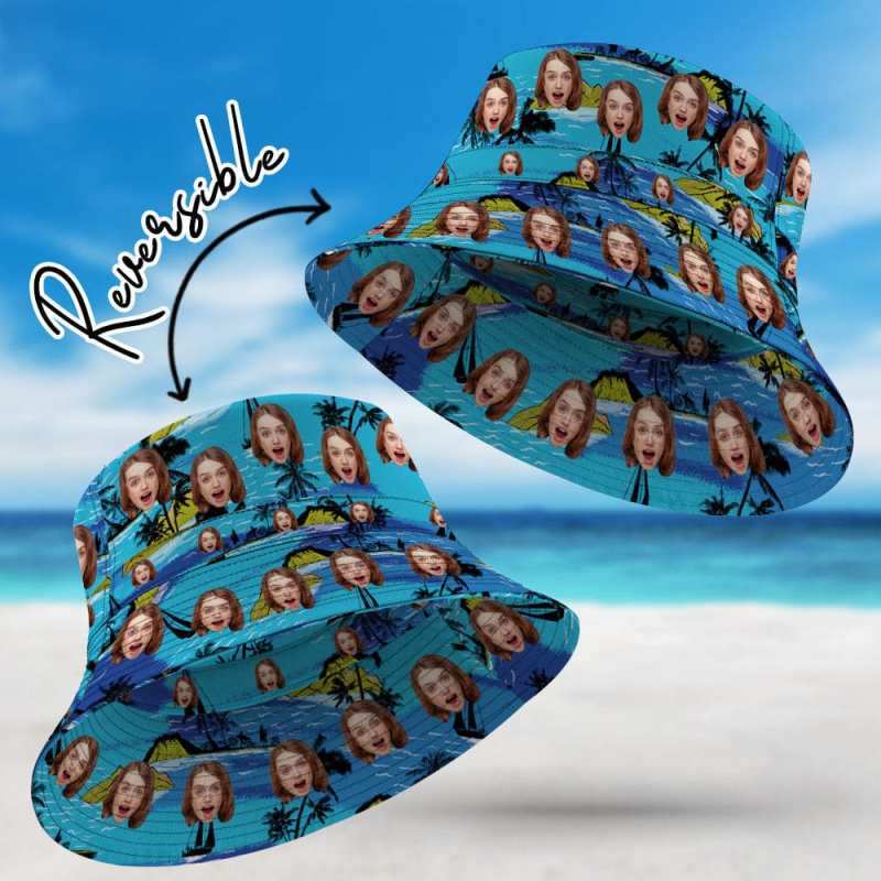 Personalized Face Bucket Hat Double-Side-Wear Reversible Hawaiian Style Outdoors Sun Cap