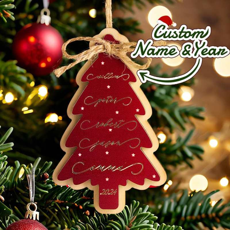 This personalized family Christmas ornament is the perfect addition to your holiday decor. Featuring a Christmas tree design with space to add your family names, this ornament can be personalized for a festive touch. This ornament is a durable and meaningful keepsake for years to come.