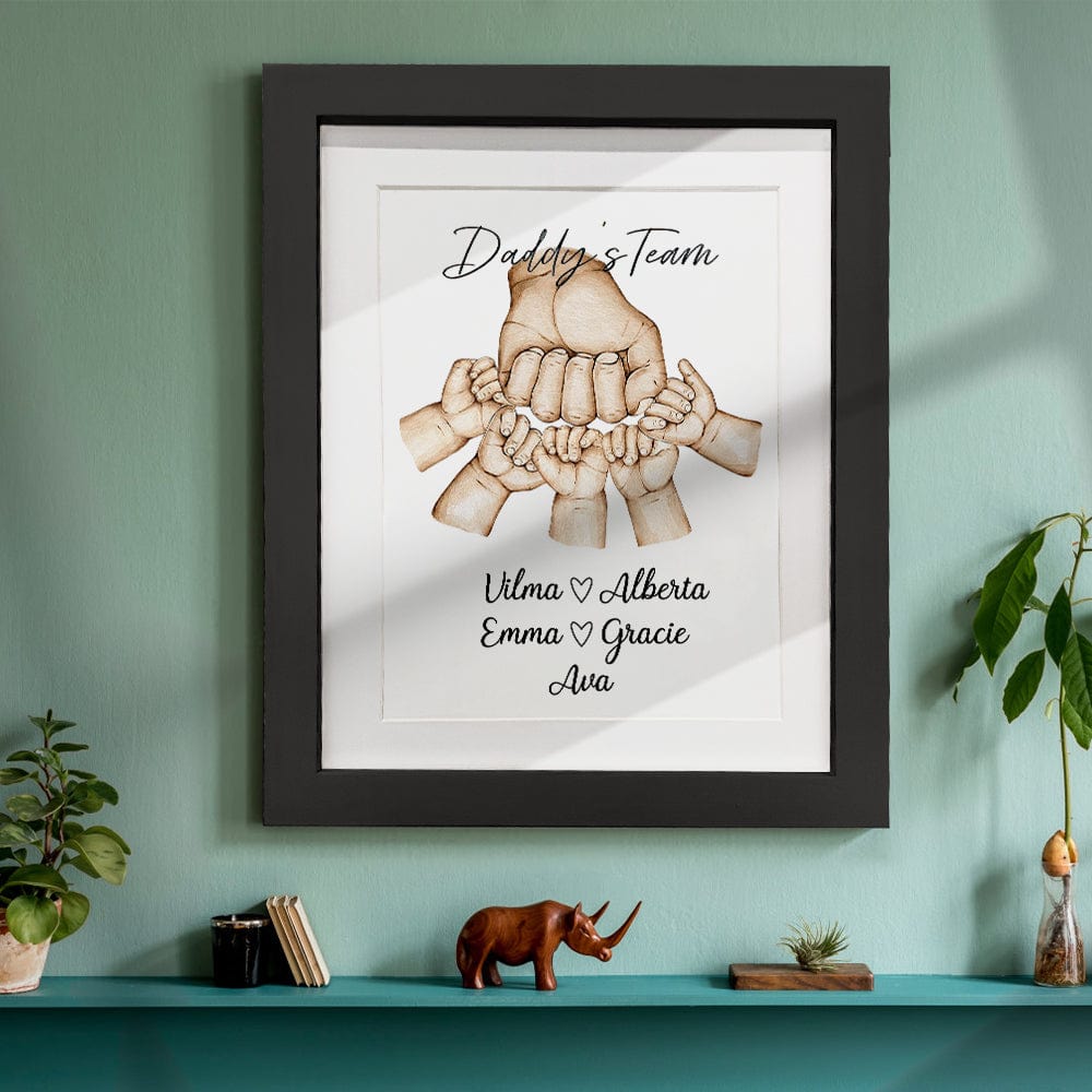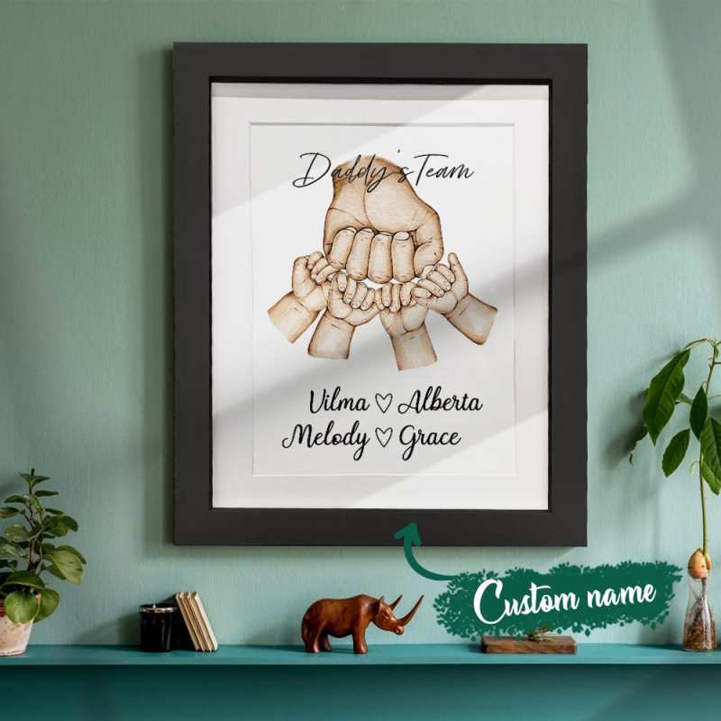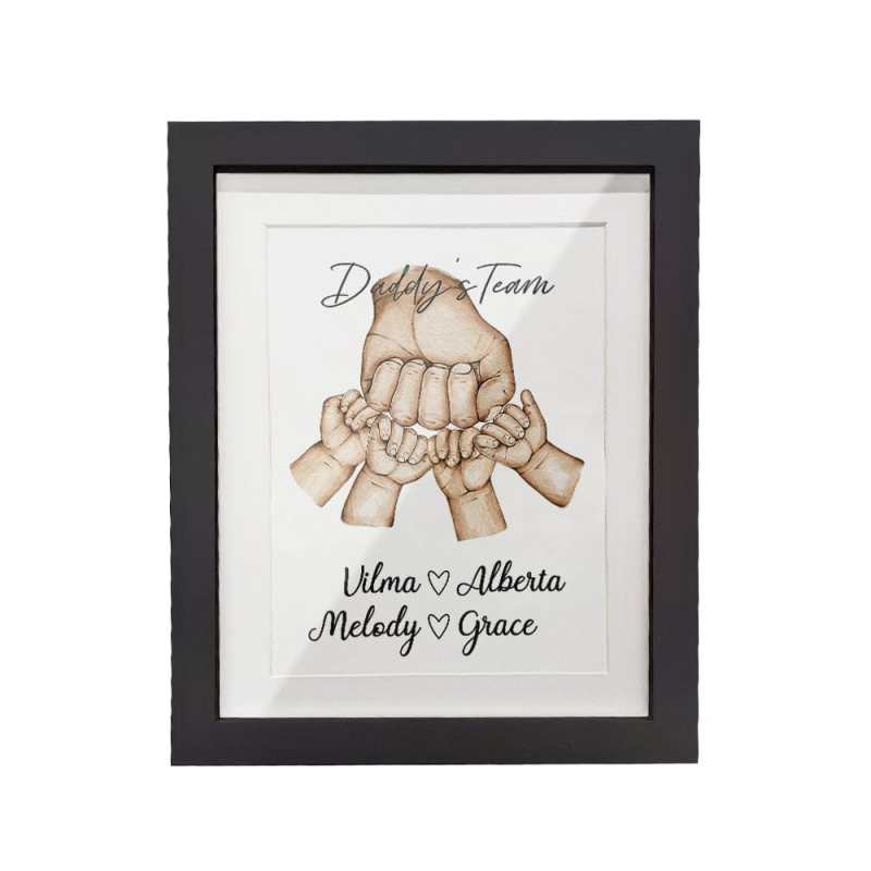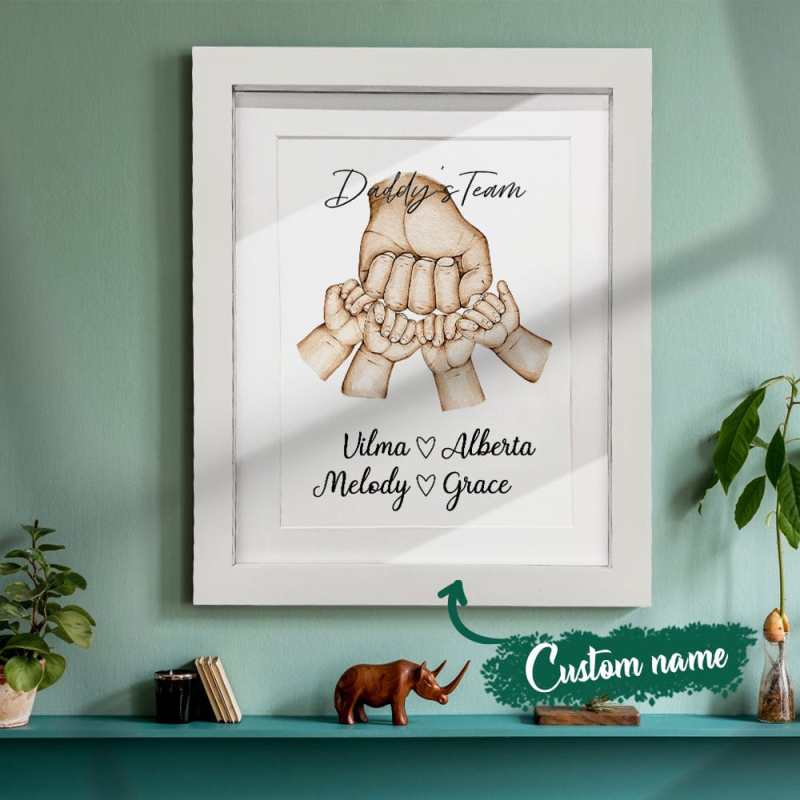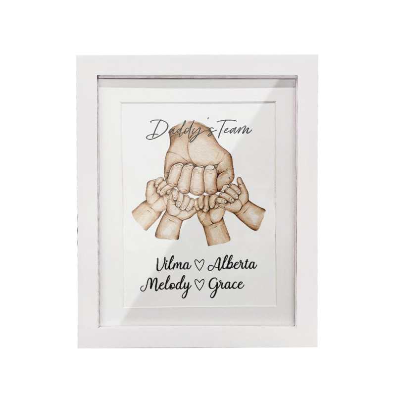 This lovely and quirky "fist bump" watercolour gift featuring dad and "his team" can be personalized to include all the names of his favourite little people! This would make a unique and quaint Dad or Grandpa Christmas gift, birthday, Fathers Day or 'any occasion' gift. Give the Fist Bump Frame as a thoughtful gift and watch as it puts a smile on their face.