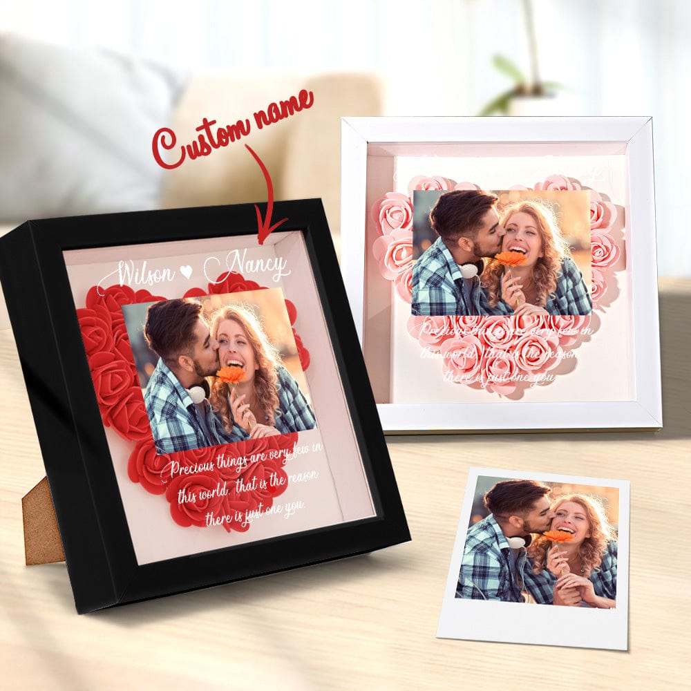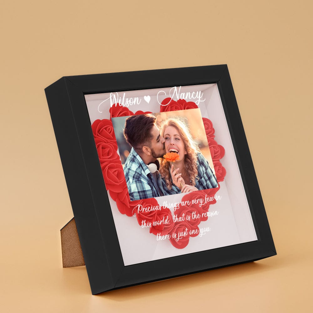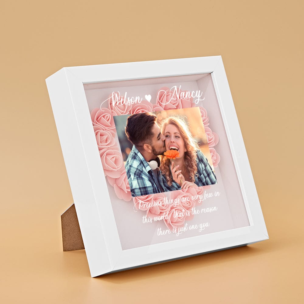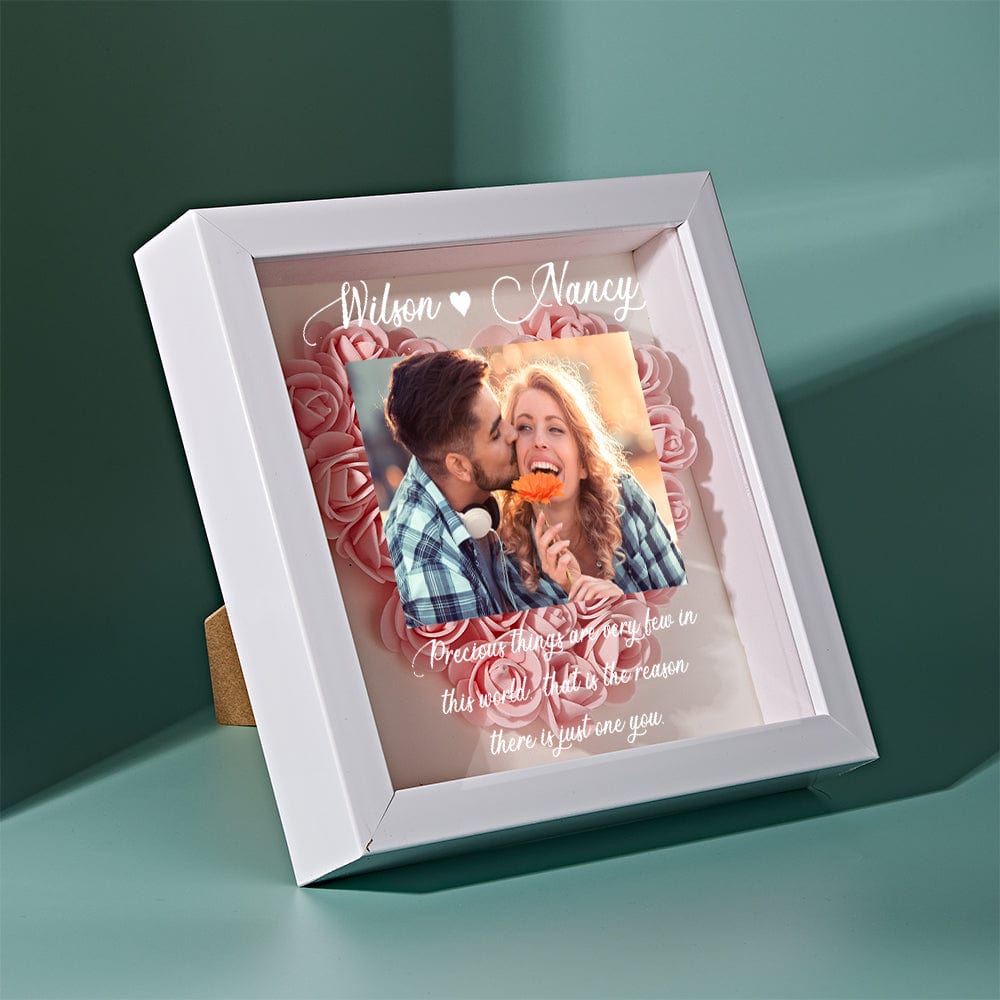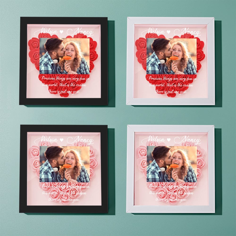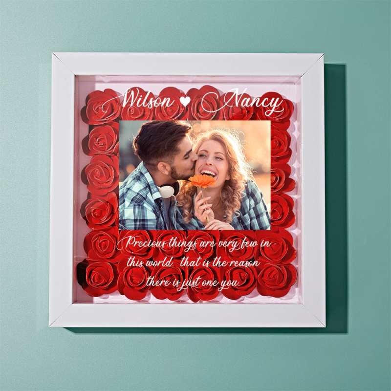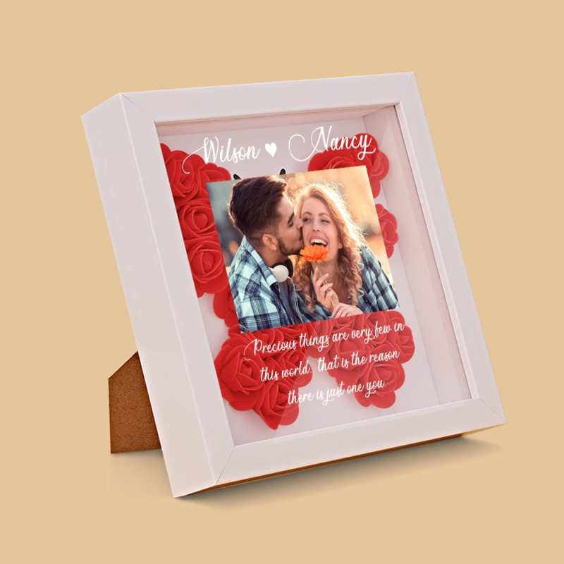 Surprise your loved one with this beautiful, personalized flower shadow box. You can customize it with the picture of you and mom, names and custom text to keep your special memories. Show your love with our beautiful roses with varied styles and colors available.