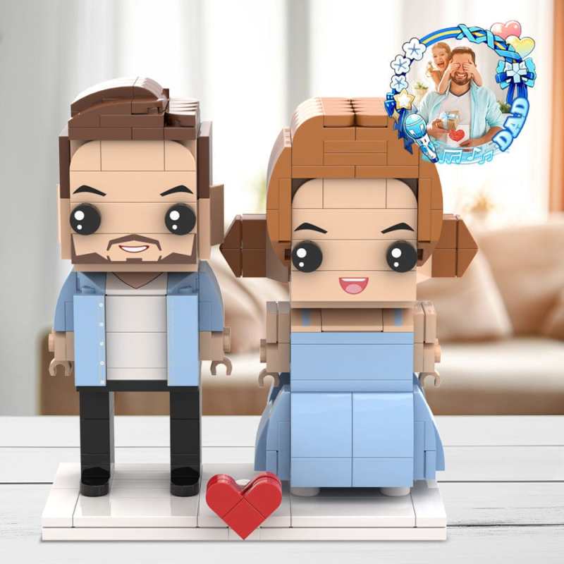 Personalized Fully Body Customizable Brick Figures Dad and Daughter In Blue Dress Gift For Dad