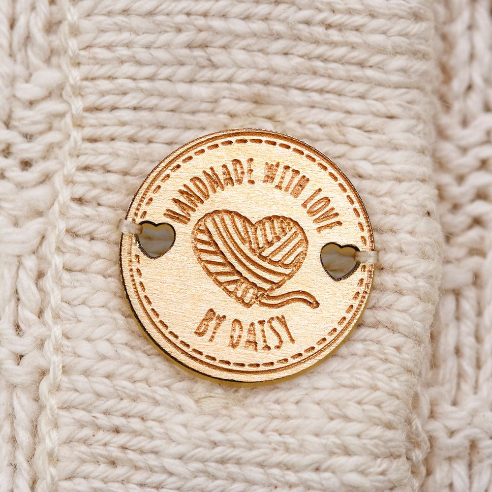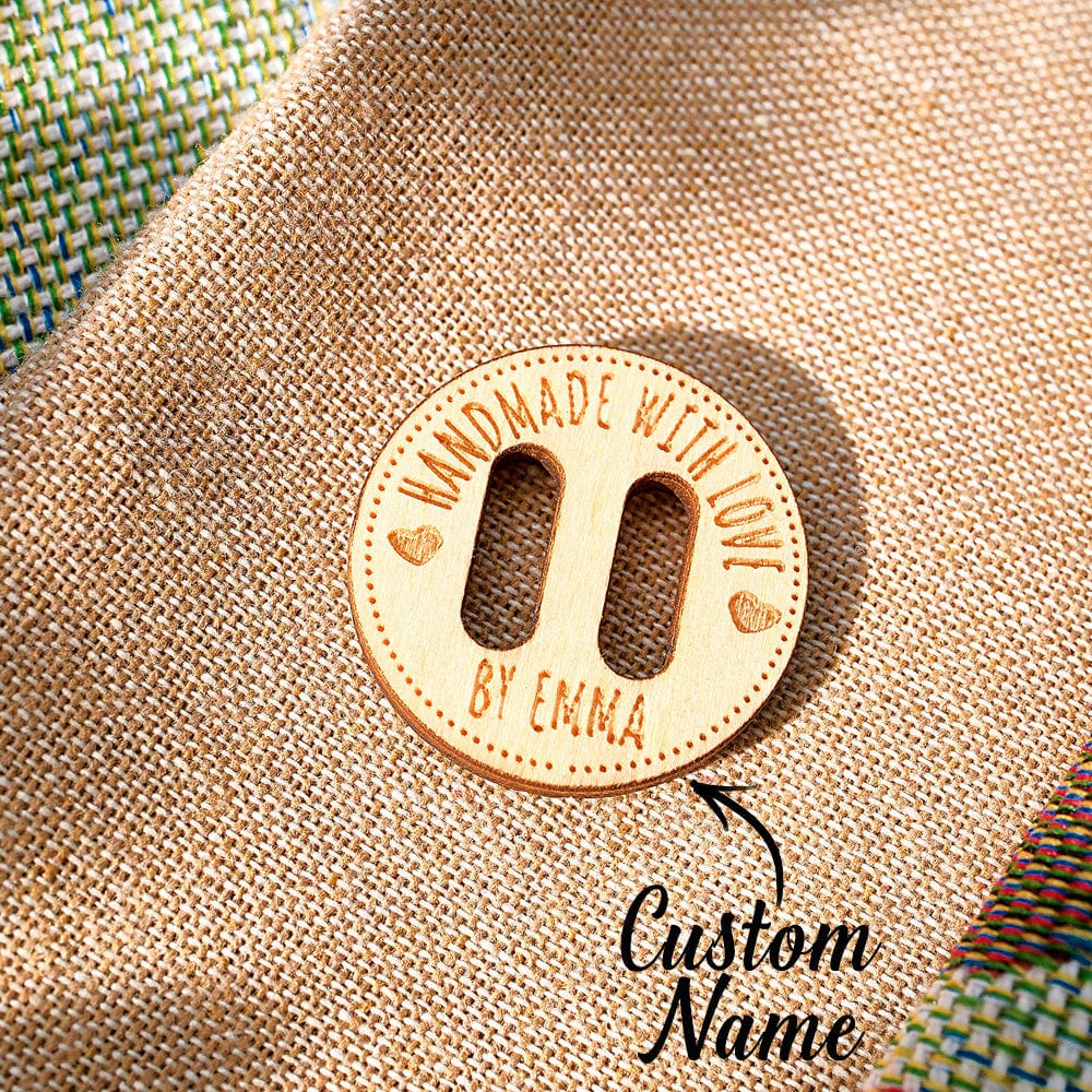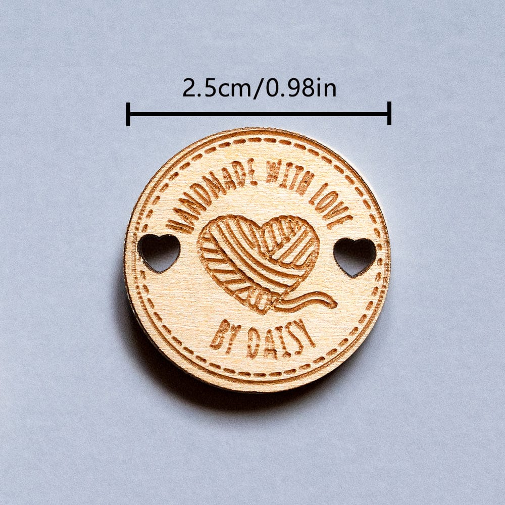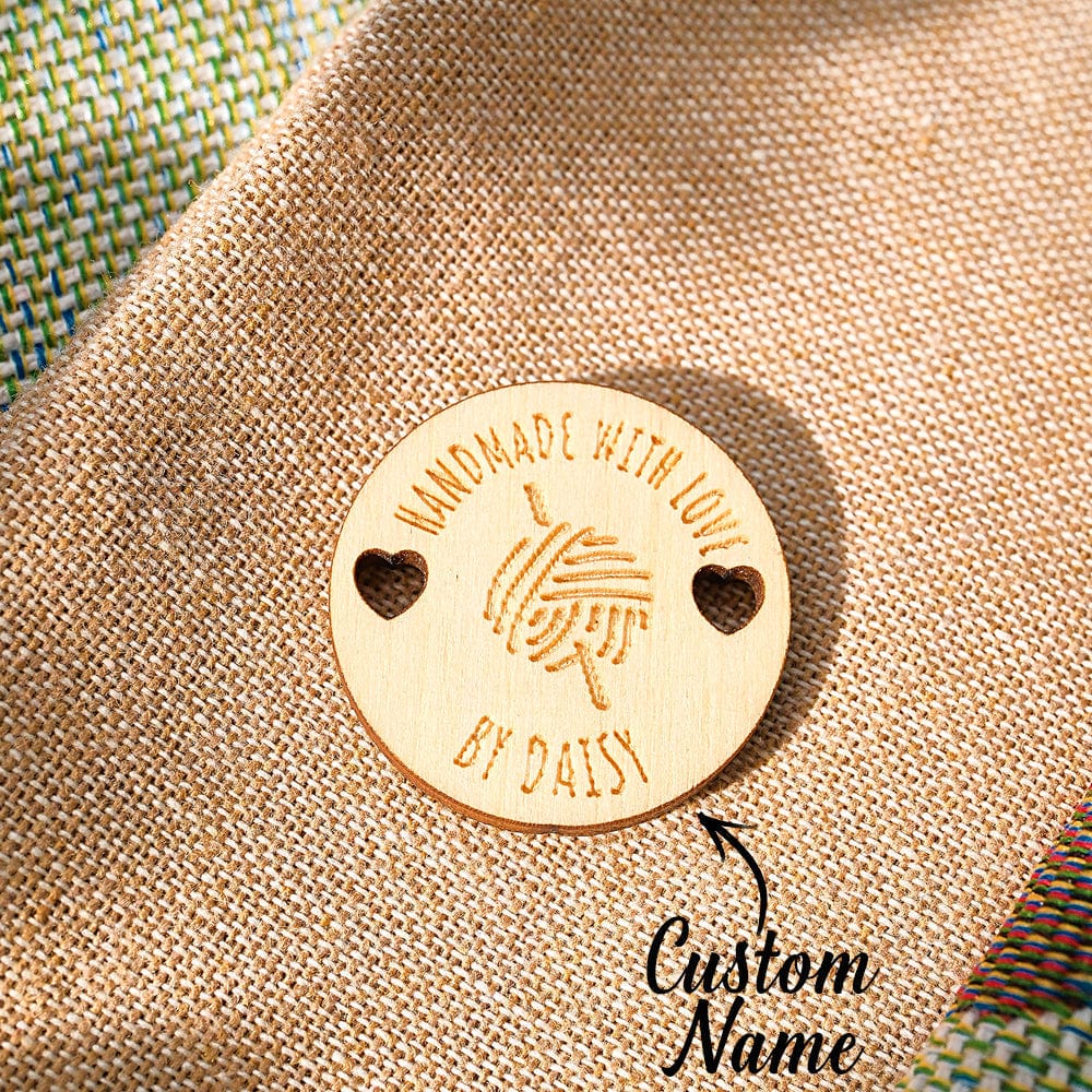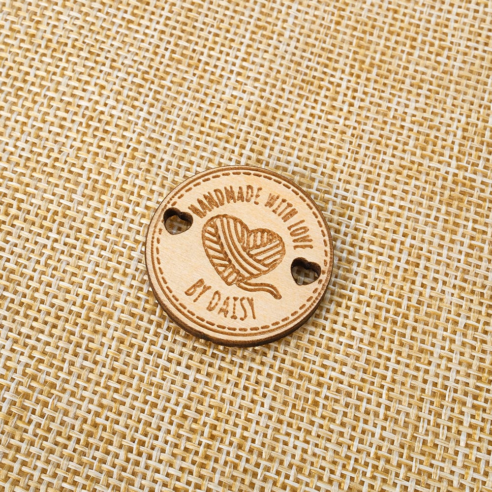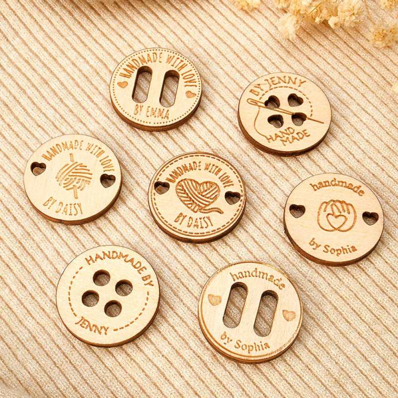 These charming wooden buttons feature a personalized name inscription, perfect for adding a personal touch to any garment. Whether for a mother, grandmother, or knitting/crocheting enthusiast, these labels make a thoughtful and unique gift. Set of 15 buttons included.