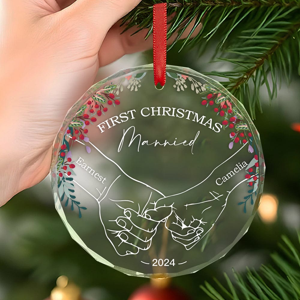 This thoughtful gift features a loving couple holding hands and can be personalized with their names and the year. Perfect for Couples, Husband, Wife, Girlfriend, and Boyfriend, this ornament is ideal for Christmas, Valentine's Day, Thanksgiving, birthdays, and anniversaries. Its elegant and timeless design ensures it will be a meaningful and cherished keepsake, celebrating love and new beginnings in style.