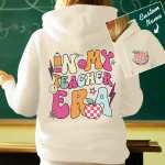 This personalized hooded sweatshirt is the perfect gift for teachers, featuring a custom name design and "In My Teacher Era" print. Show appreciation for educators and their impact with this unique back-to-school present. Made with high-quality materials and available in various sizes.