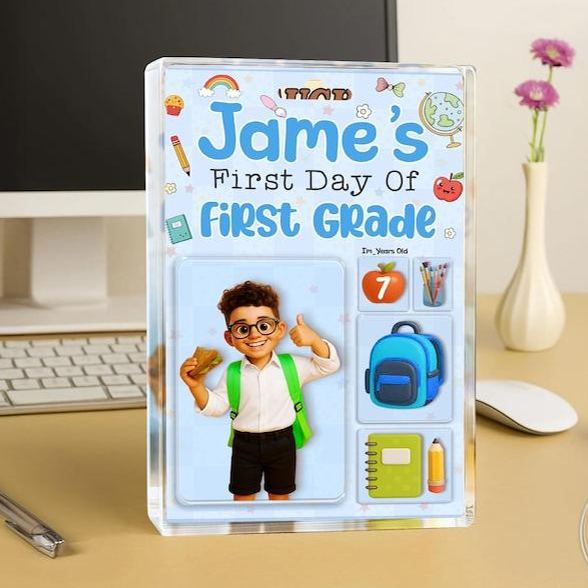 Personalized Kid 3D Action Figure Acrylic Block Keychain and Fridge Magnets, First Day Of School Sign Acrylic Block, Back To School Gifts, Acrylic Figurine with Photo