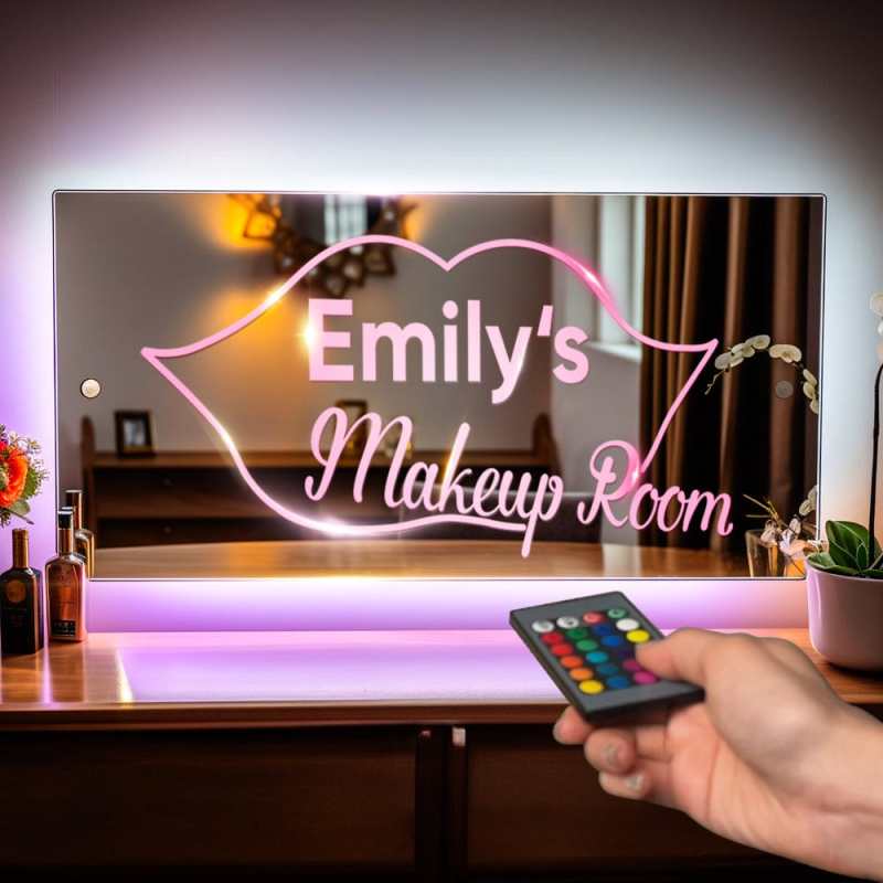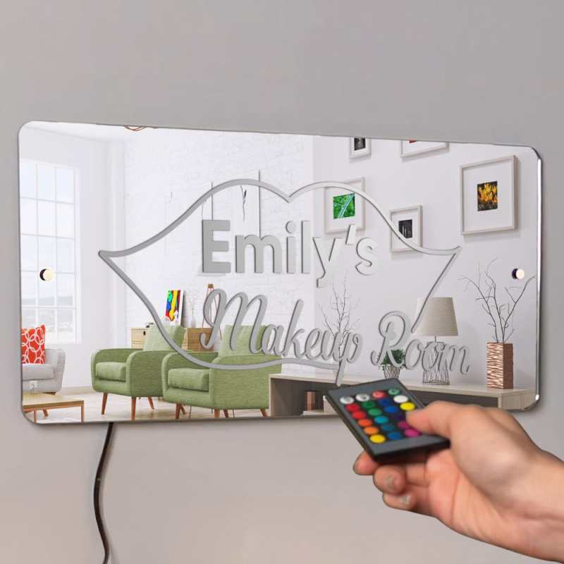 Please note: you can change the colors on the product via the remote control supplied you do not select the colors while ordering. The name mirror is made with safety in mind, we use acrylic safety mirrors which are lightweight and shatterproof.