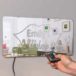 This super stylish personalized name mirror with LED lighting is a perfect and unique addition to any youngster's bedroom, they will love lighting up the personalised mirror and seeing their name in lights. This eye-catching personalized name mirror makes the perfect gift for 2023 and it will be cherished and loved for many years to come by the recipient. Includes remote control for LED lighting and chrome wall mounting stand-offs.