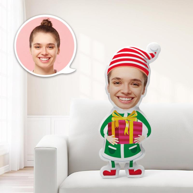 Personalized Minime Christmas Elf Holding Gift Box Pillow Unique Custom Minime Throw Doll Give Your Child The Most Meaningful Gift