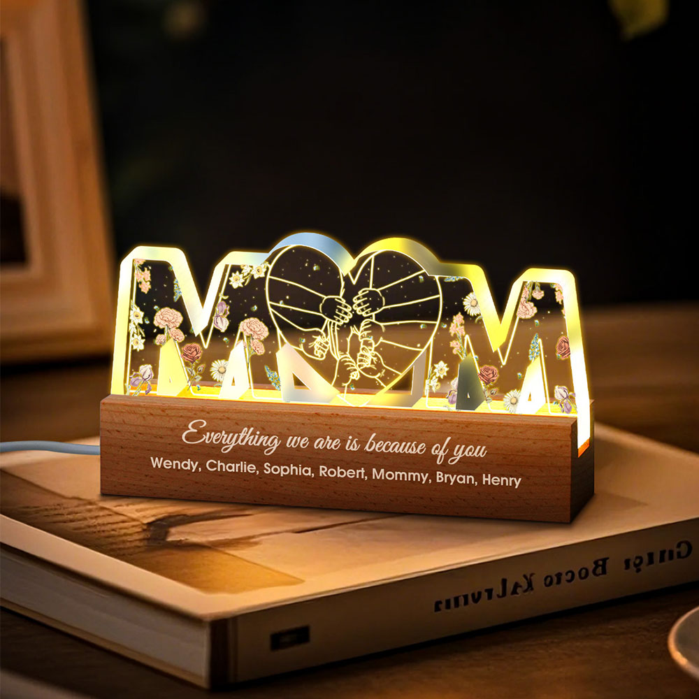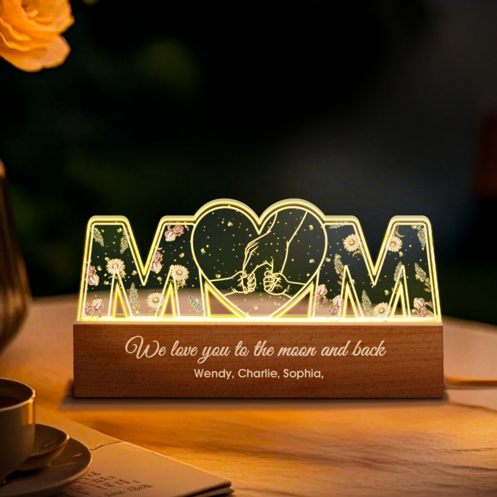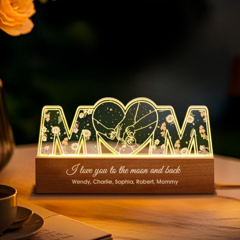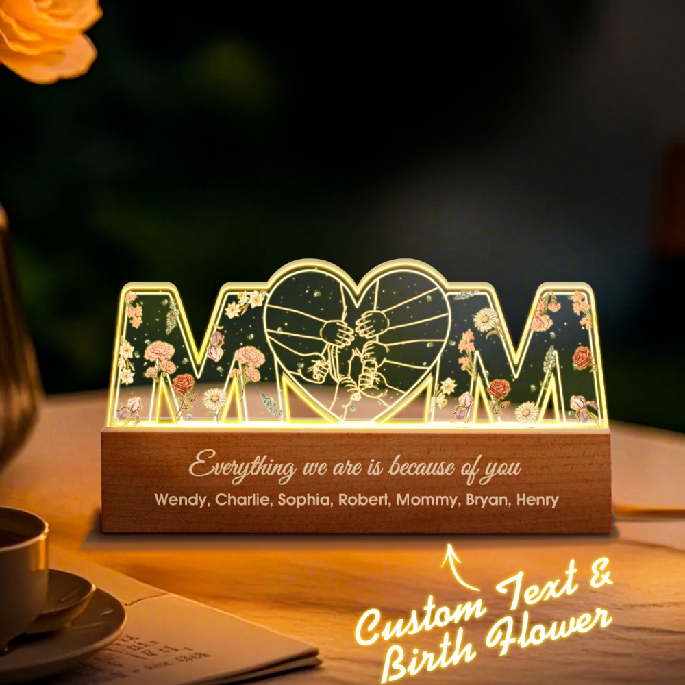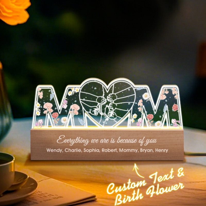 Illuminate your mom's love with our Personalized Mom Led Light Frame! The LED light displays the birth flower and can be personalized with a custom message. Let your mom know she's always in your universe with this unique gift. This personalized gift is the perfect gift for Christmas, family reunions, birthdays, anniversaries, or any other special occasion. She can display her meaningful gifts anywhere in the living room, bedroom, or workplace for stunning decor.